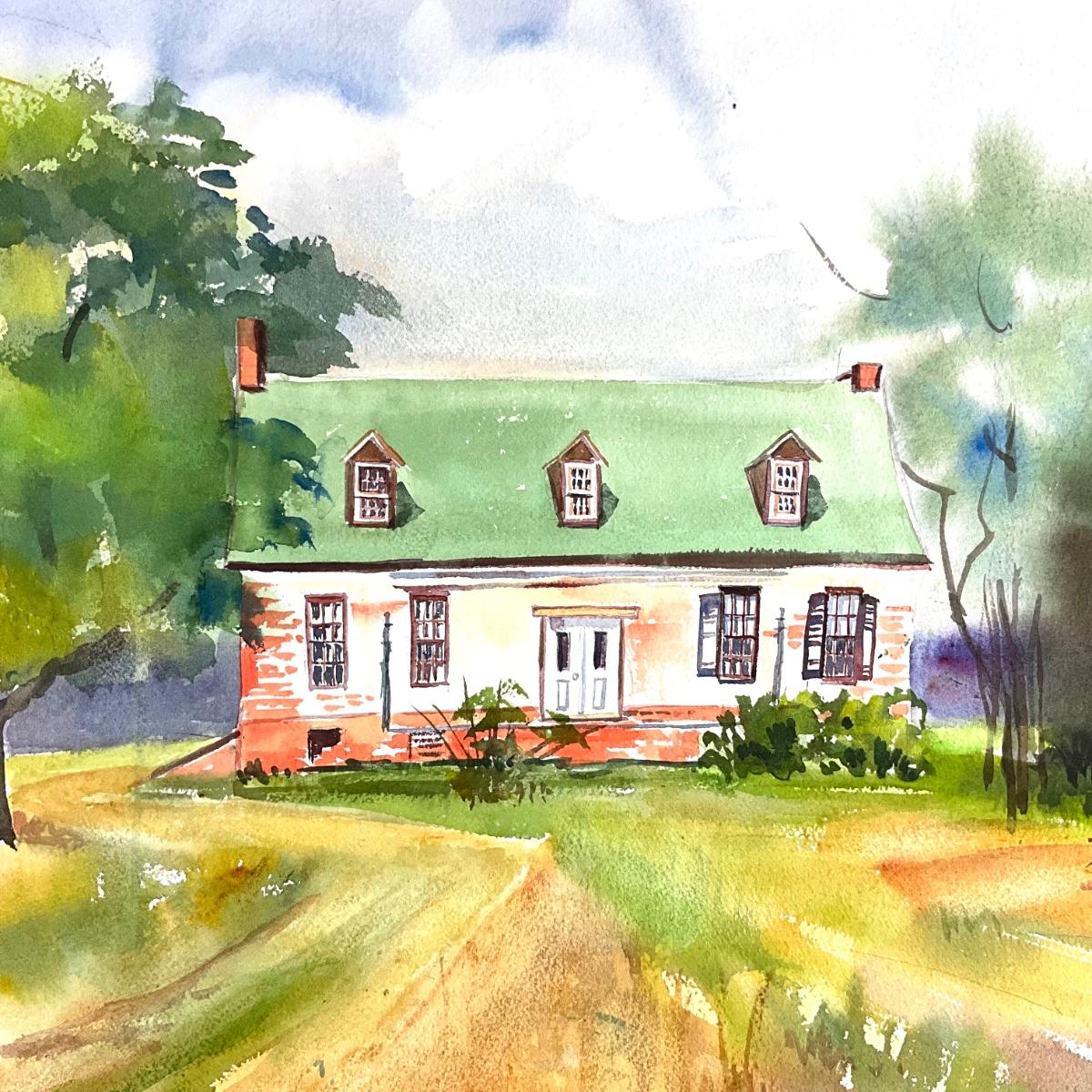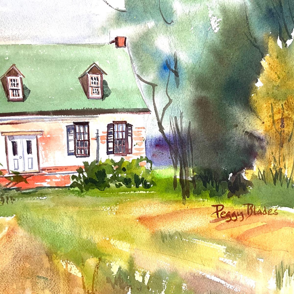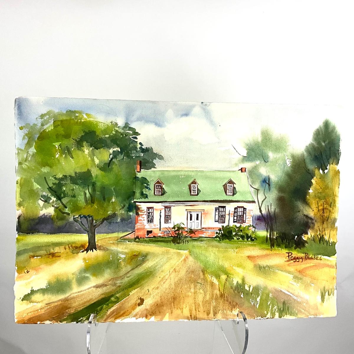 511 Original Watercolor of Brick House in Field by Peggy Blades