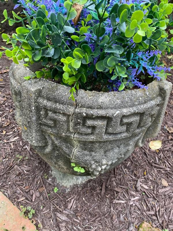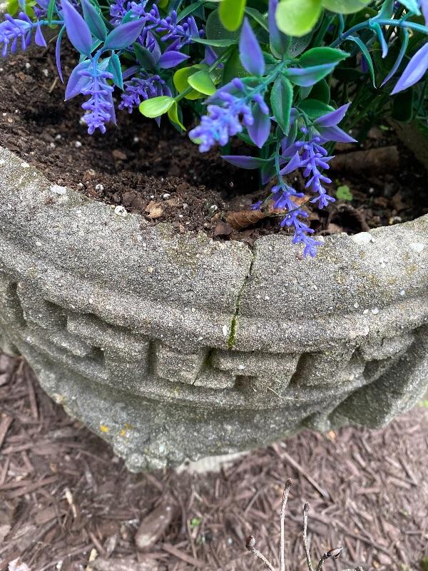 511: Pair of Cement Flower Pots with Artificial Flowers