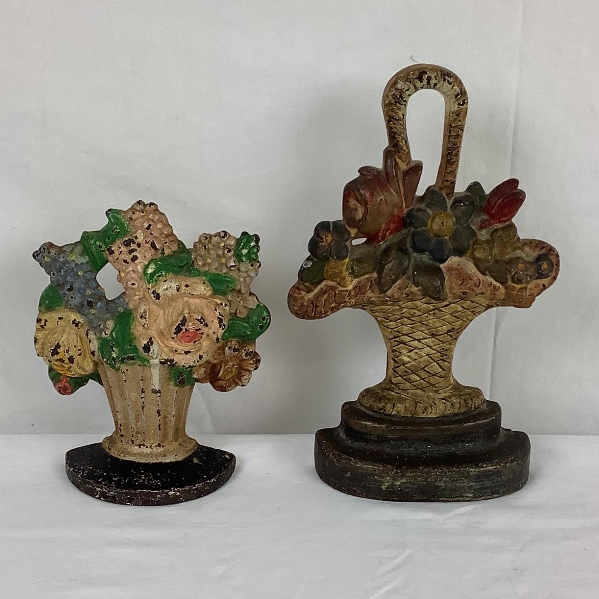 Antique Cast Iron Flower Basket & Flower/Fruit Basket Doorstops.