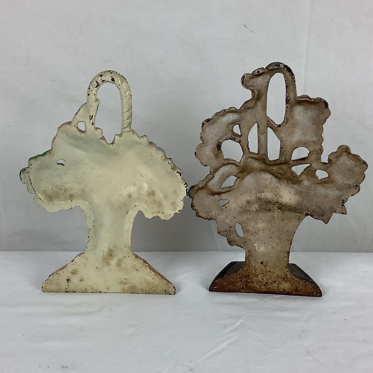 5111 Antique Cast Iron Flower Basket Doorstop Great Condition