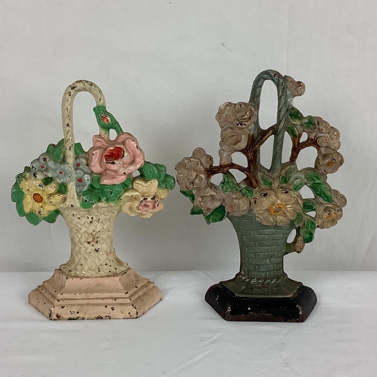 Antique Cast Iron Flower Basket Doorstop Great Condition