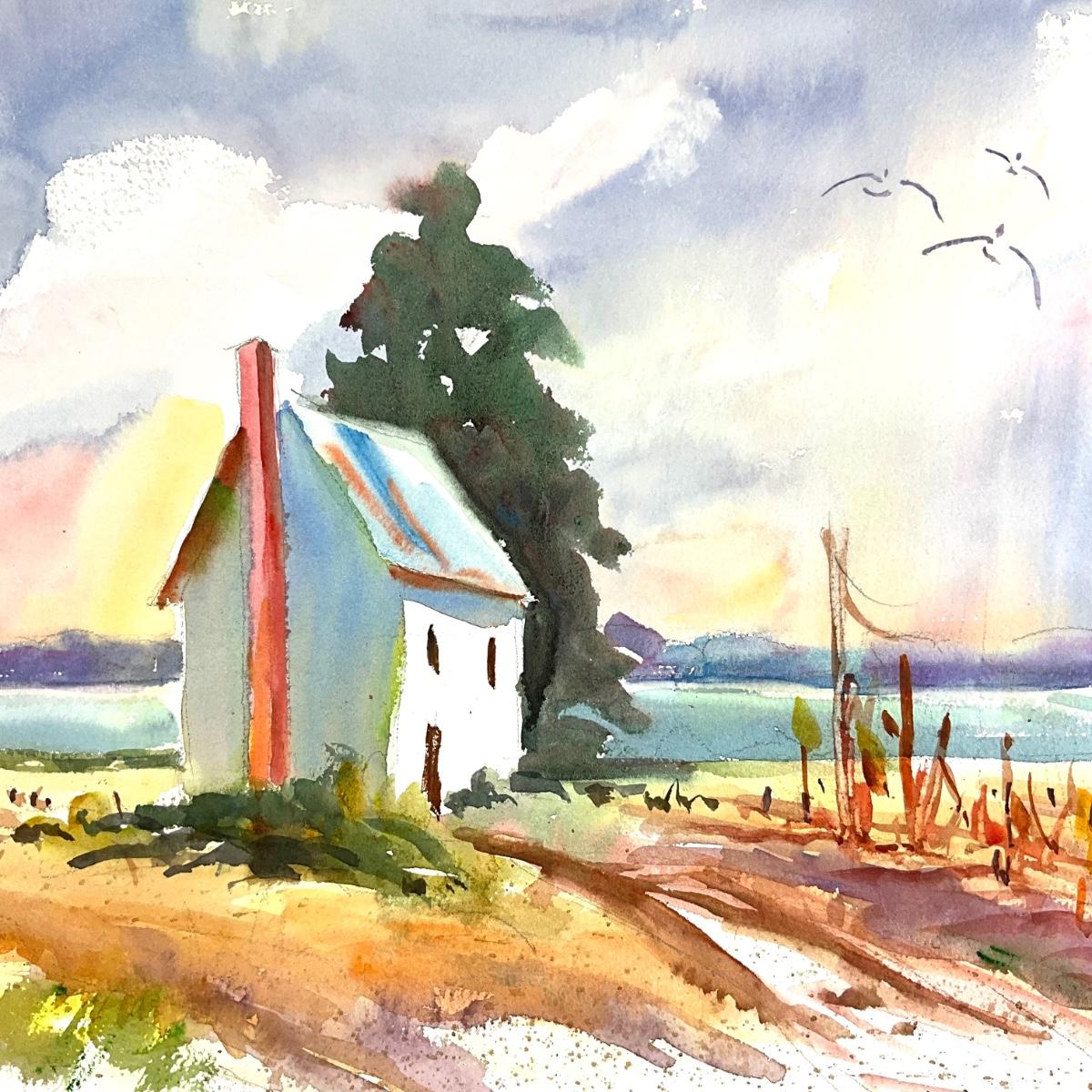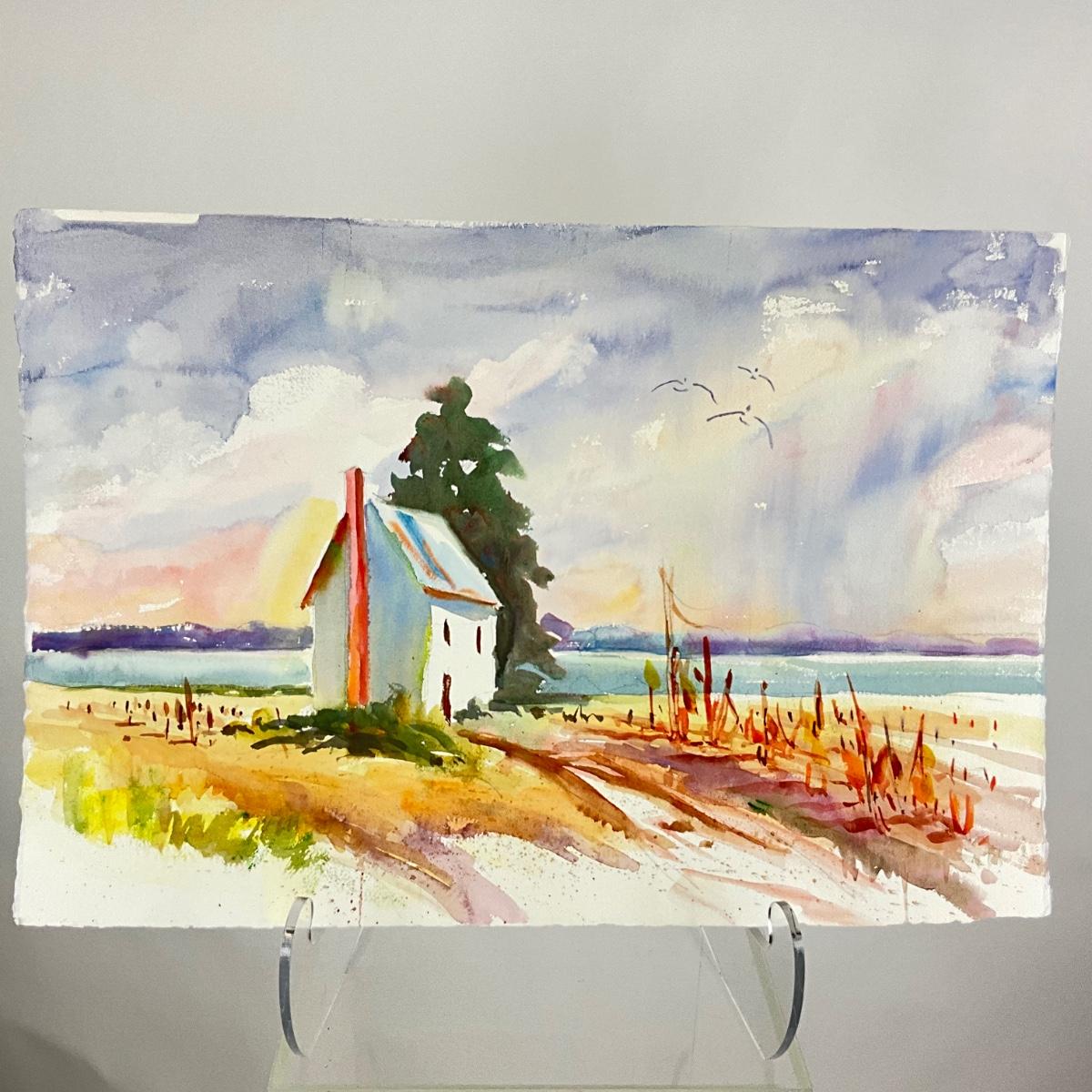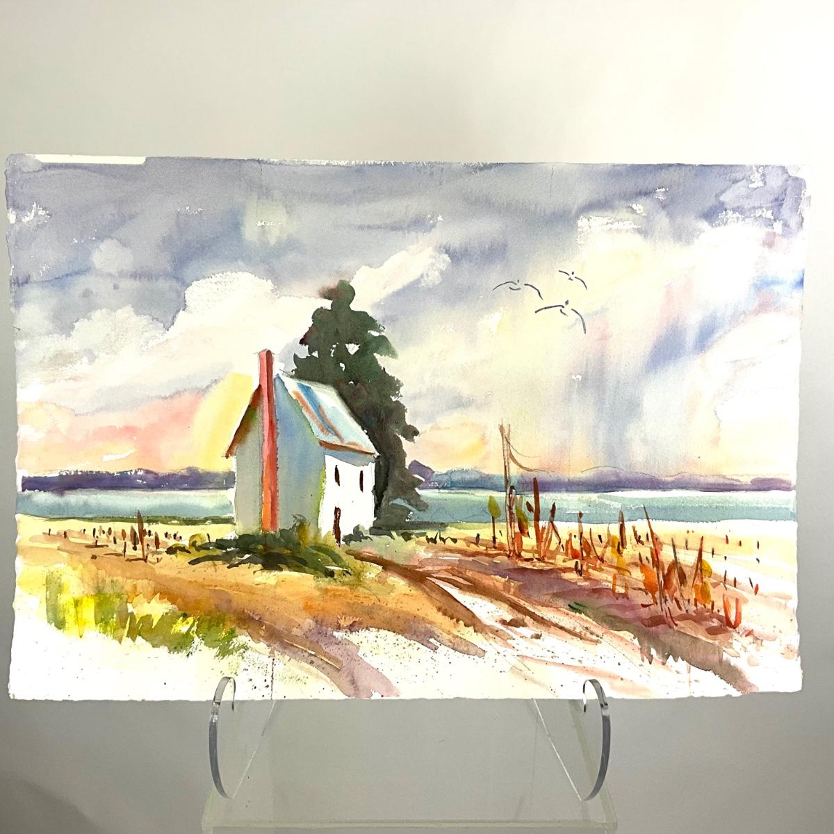 512 Original Watercolor of House by Waterside by Peggy Blades