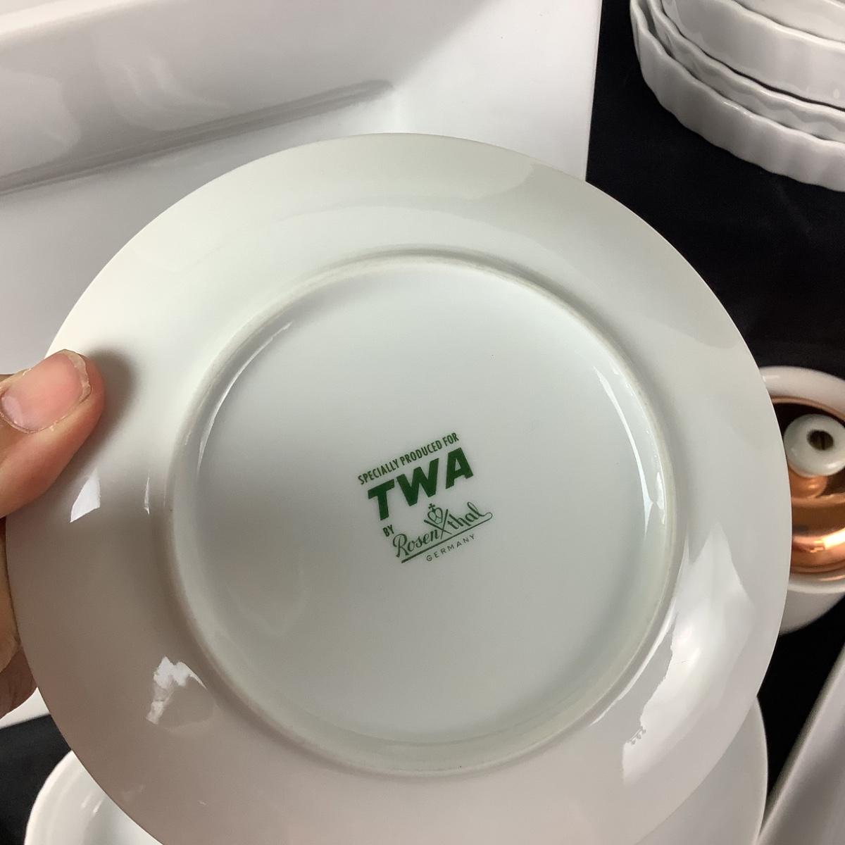 13 white TWA Rosenthal Bread and Butter Royal Ambassador Plates, Ramekins, Augratin dishes , large white serving platters