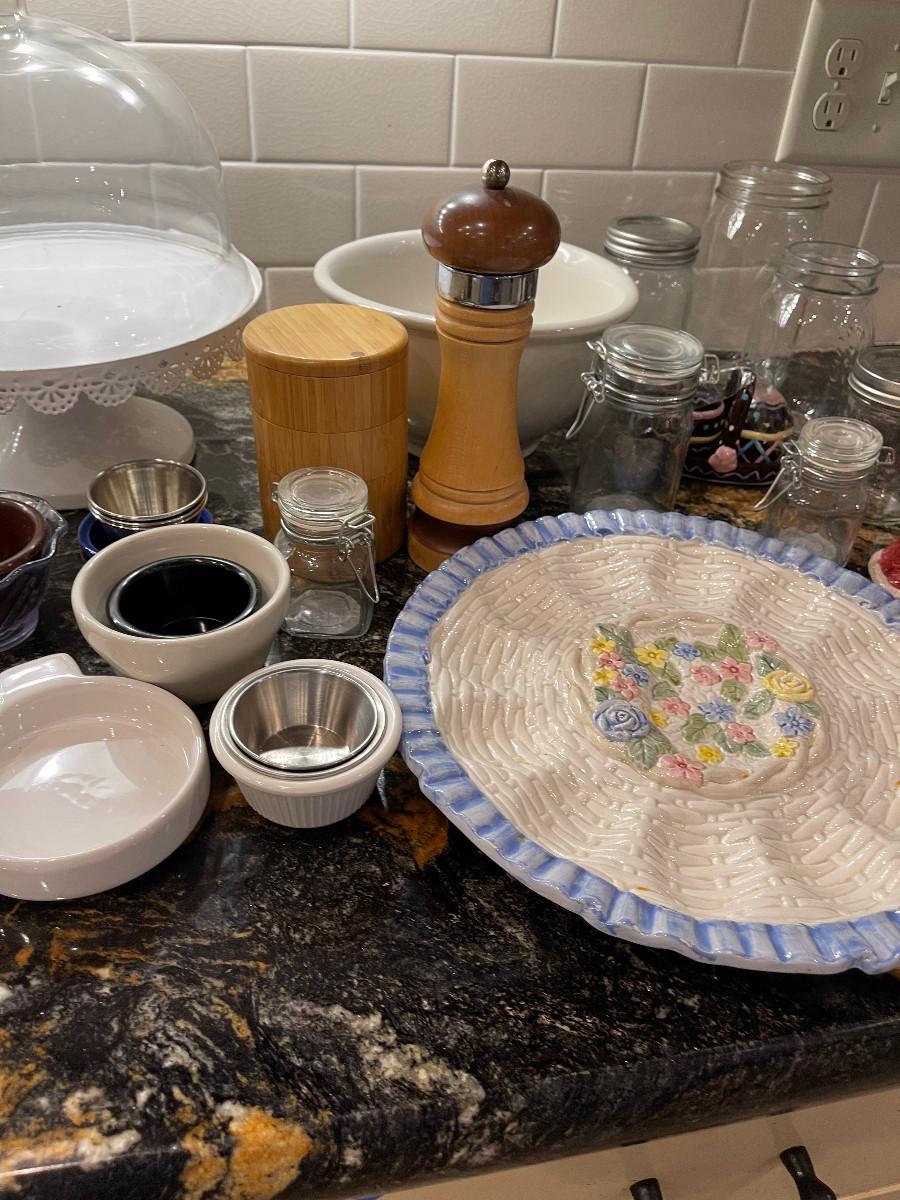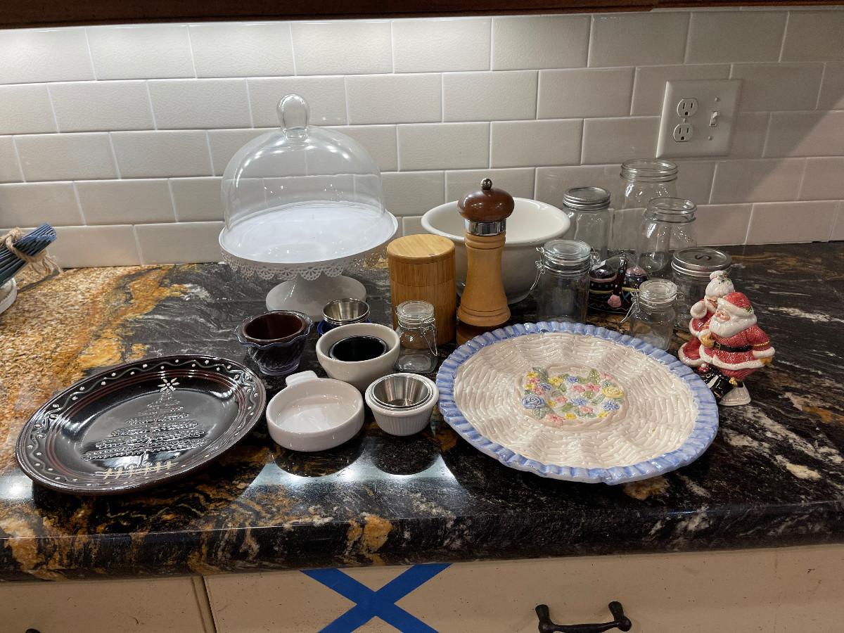 #513 Cake Plate w/ lid Serving Items and Jars.