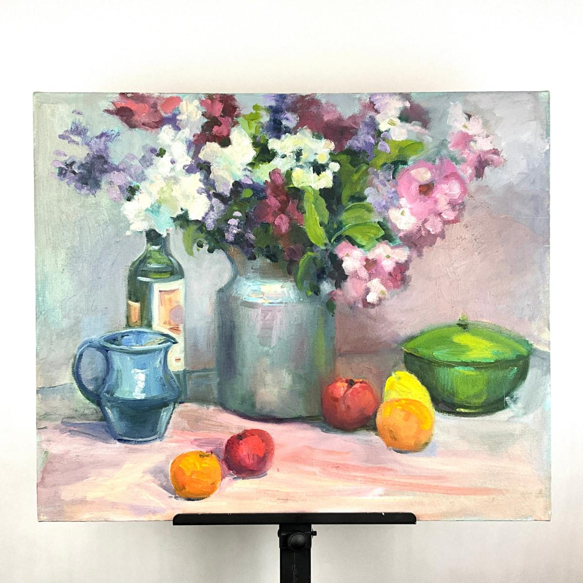 513 Oil On Canvas Still-Life Of Fruits and Flowers