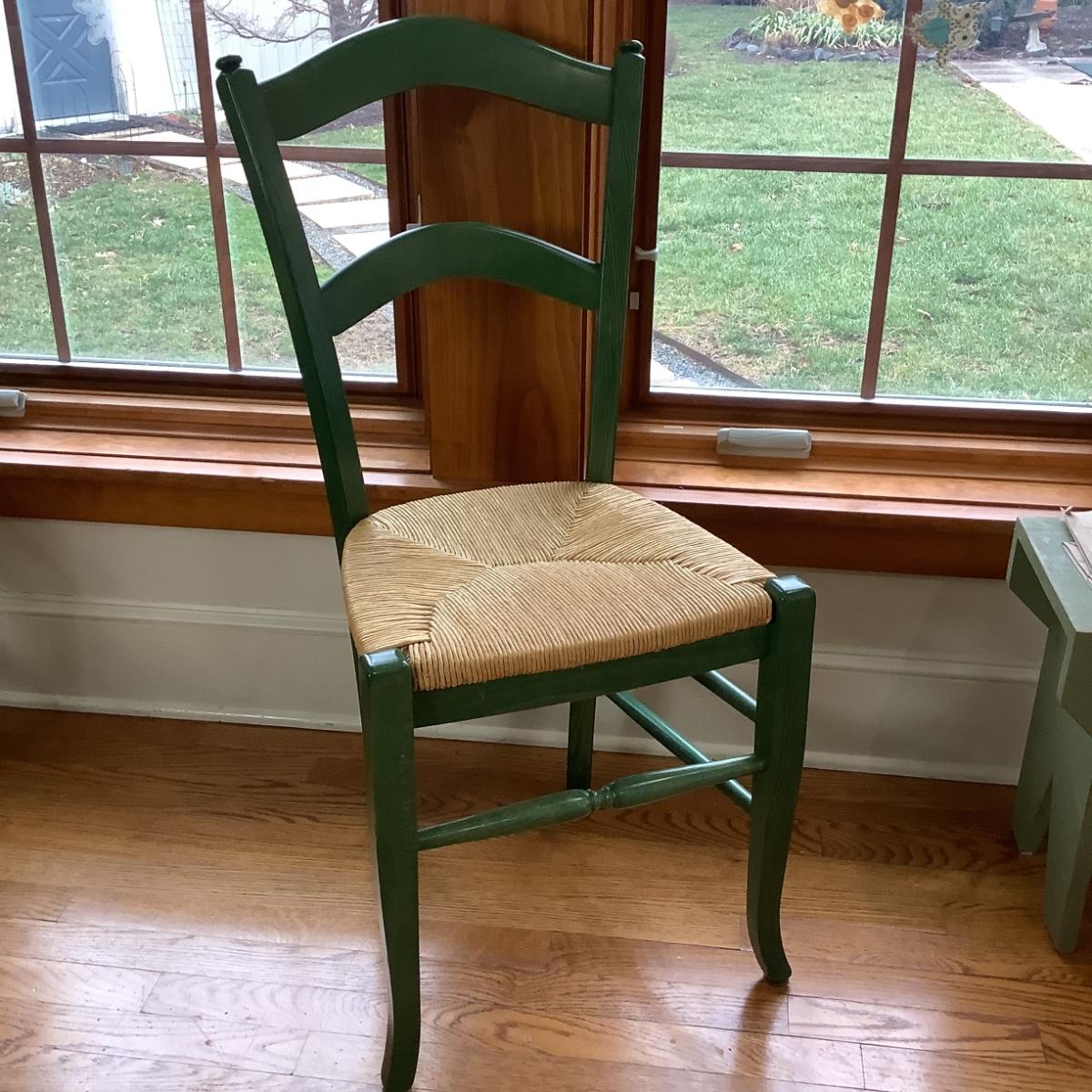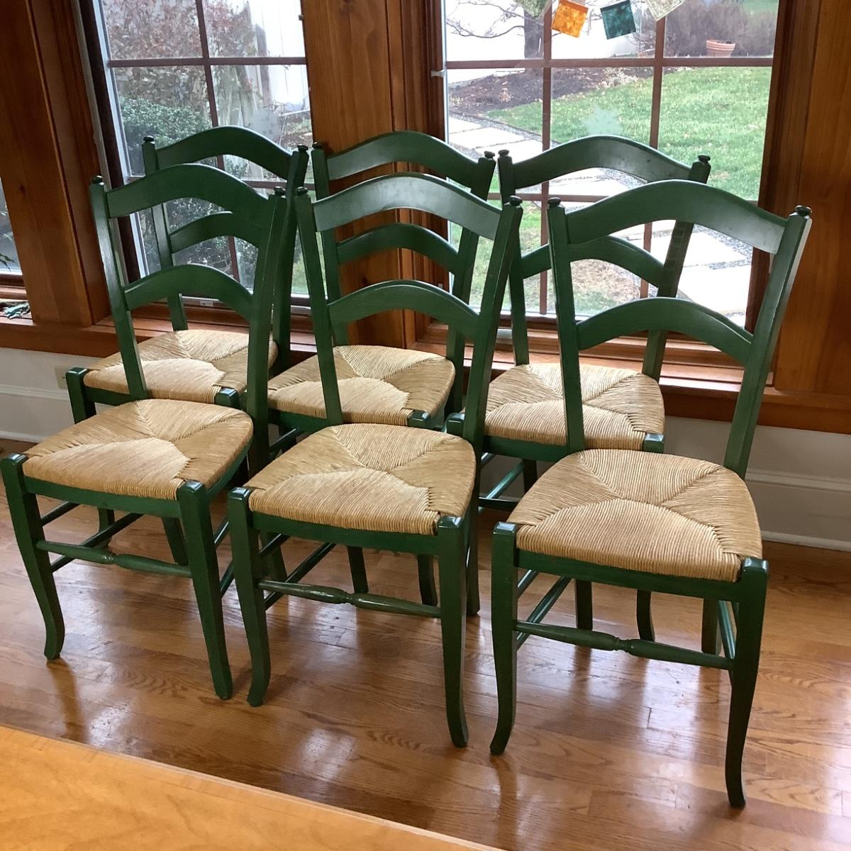 513 Set of Six Green Rush Seat Italian Dining Room Chairs
