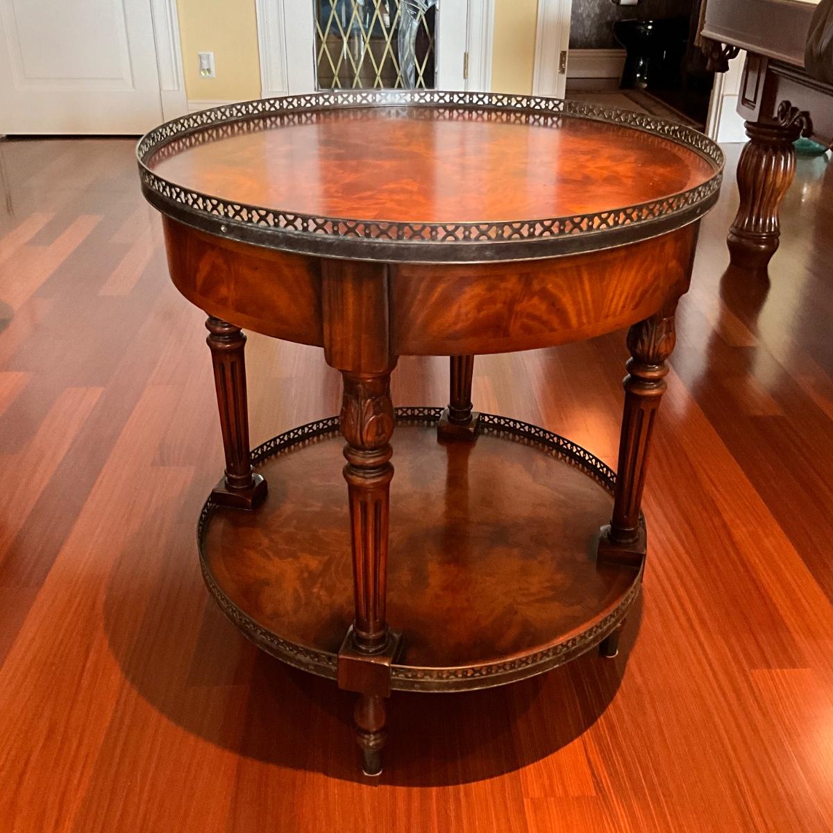 513 Theodore Alexander Round Brass Gallery Top Single Drawer Table