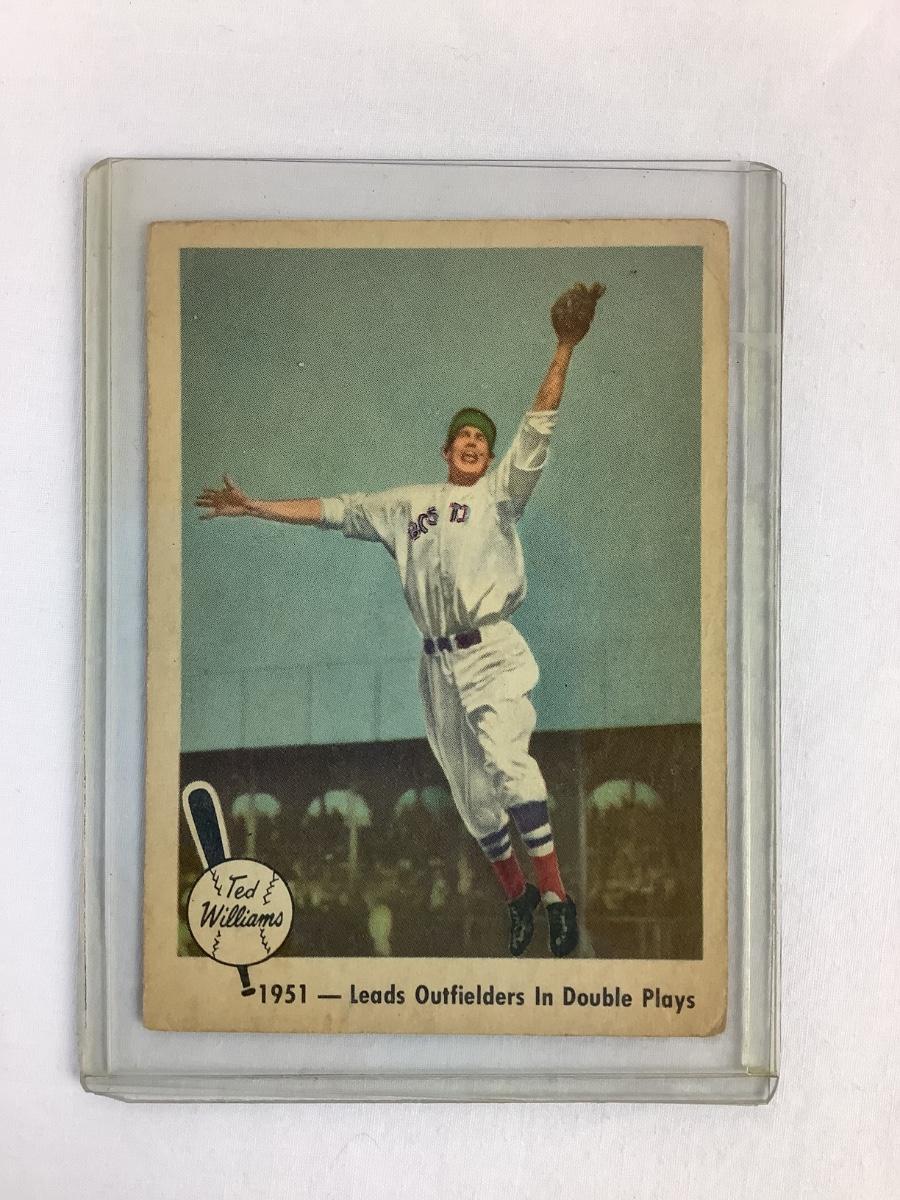 Vintage 1951 - "Leads Outfielders in Double Plays" Ted Williams #43 Fleer Baseballs Greatest Baseball Card.