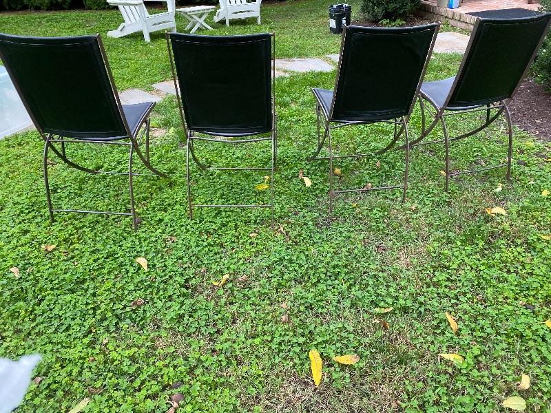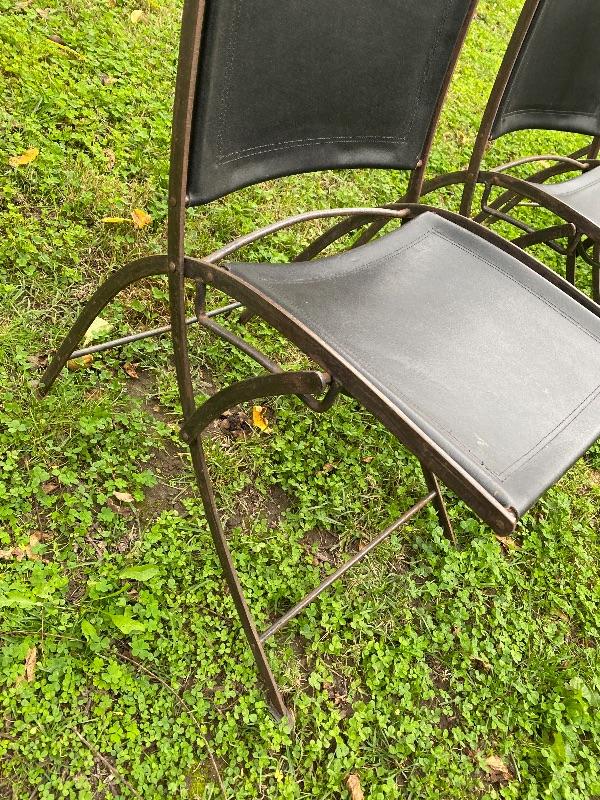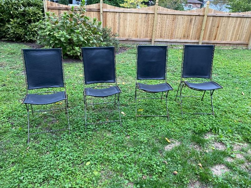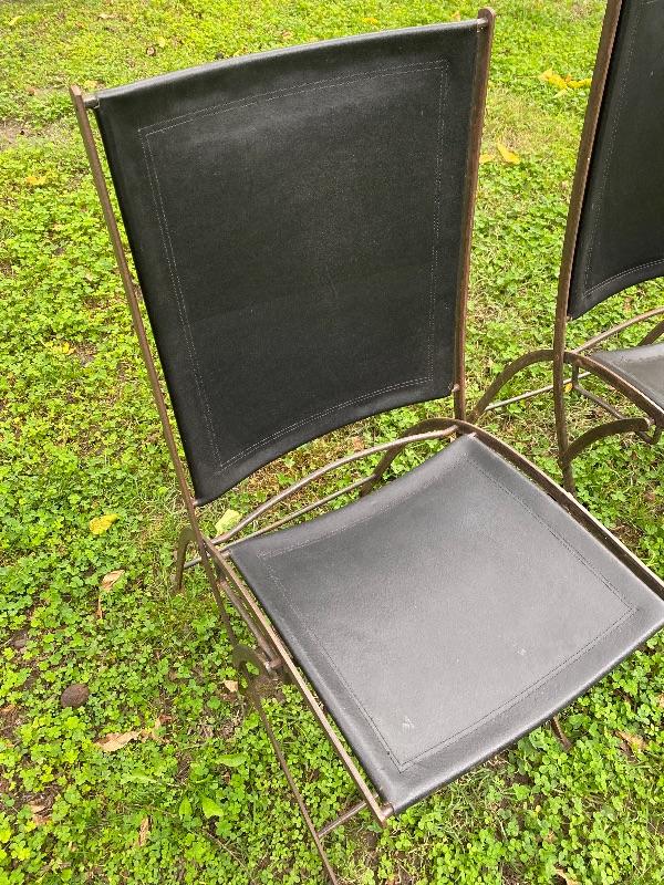 514: Set of 4 Wrought Iron and Black Leather Folding Chairs from Napa Valley