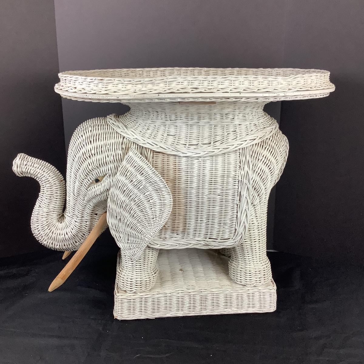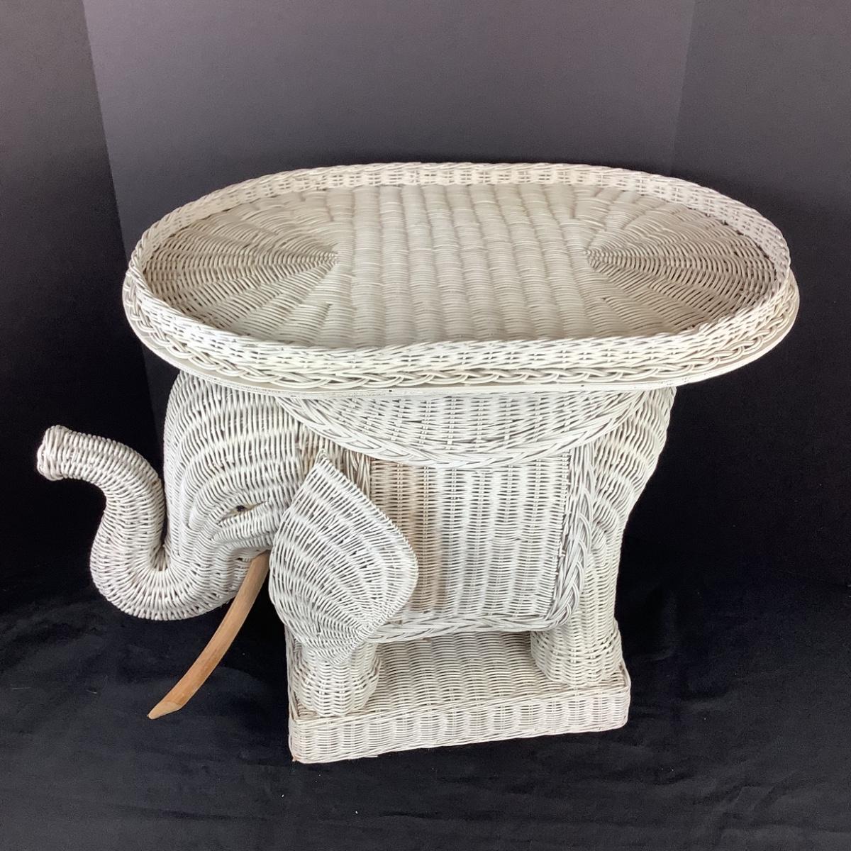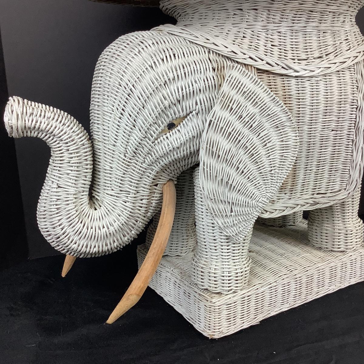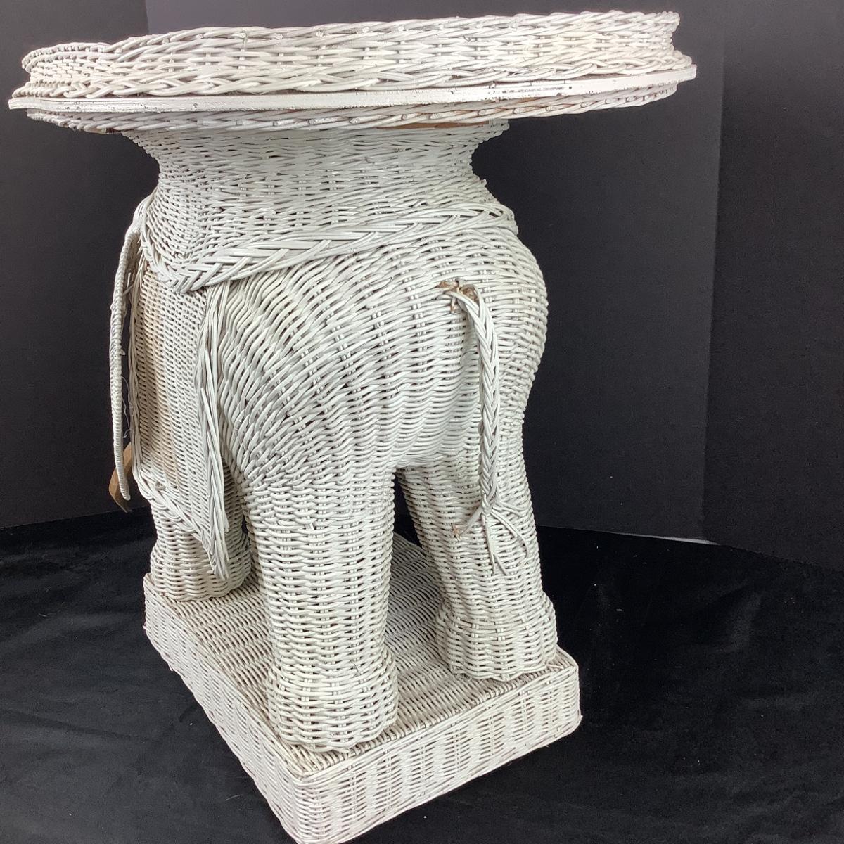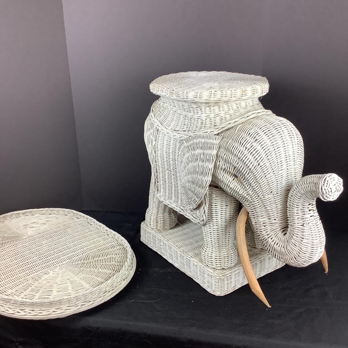 5145 Vintage Wicker Elephant Plant Stand Side Table