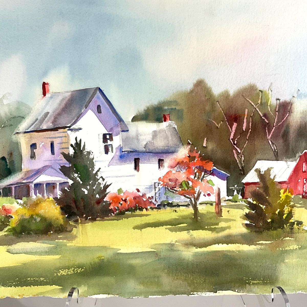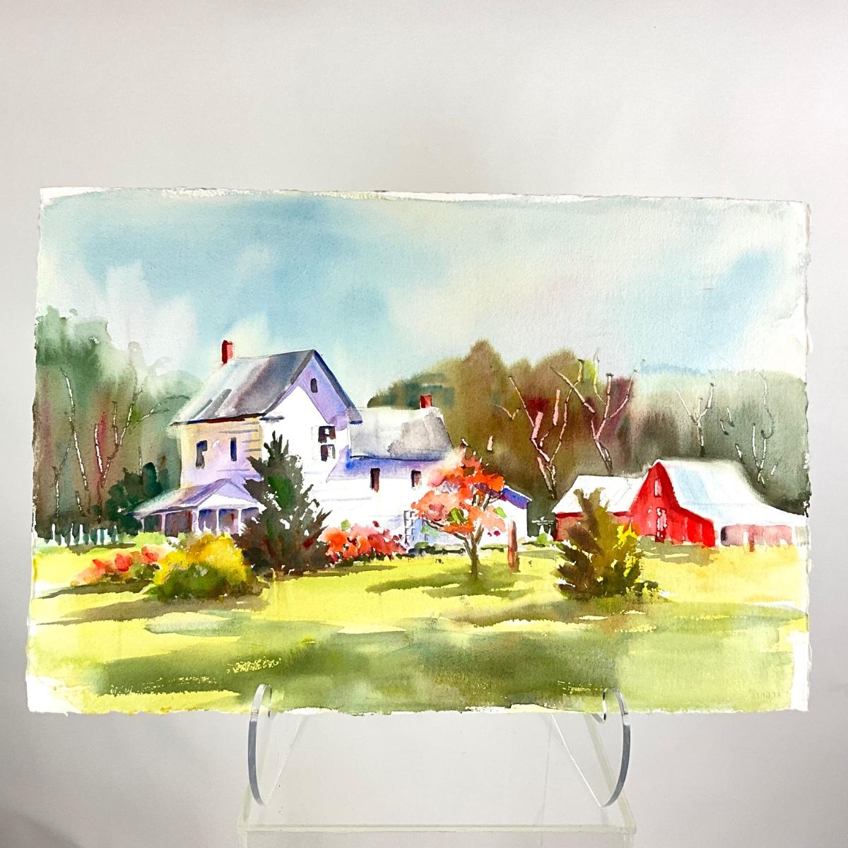 515 Original Watercolor of Farmhouse with Barn by Peggy Blades