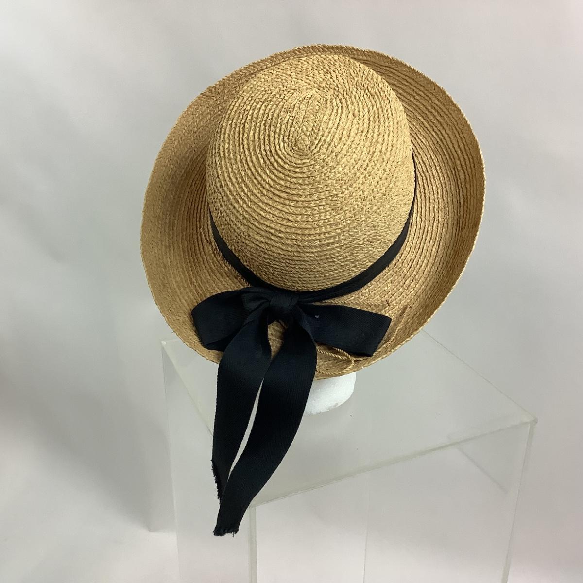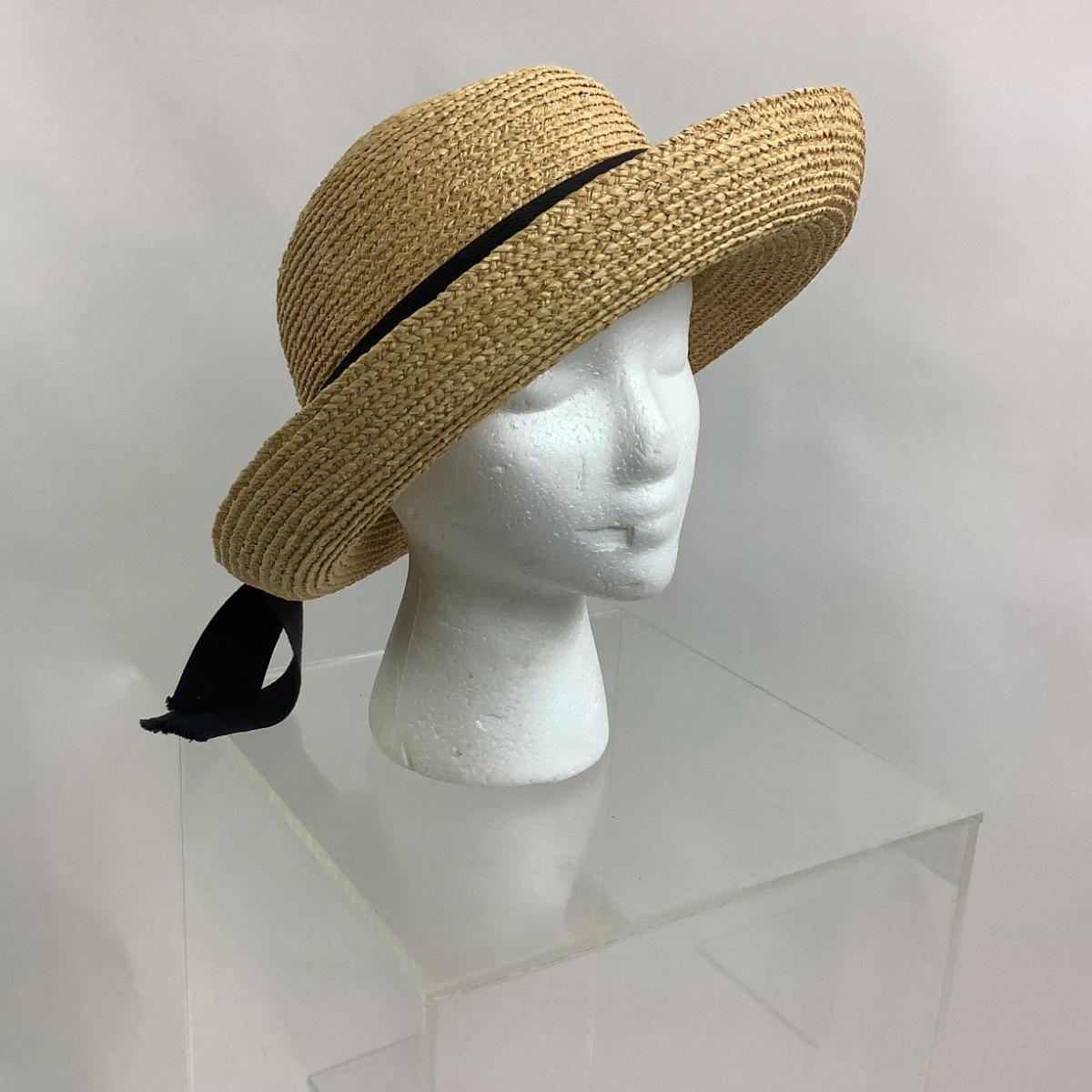 Made in Australia by Helen Kaminski, 100% Raffia with black bow.