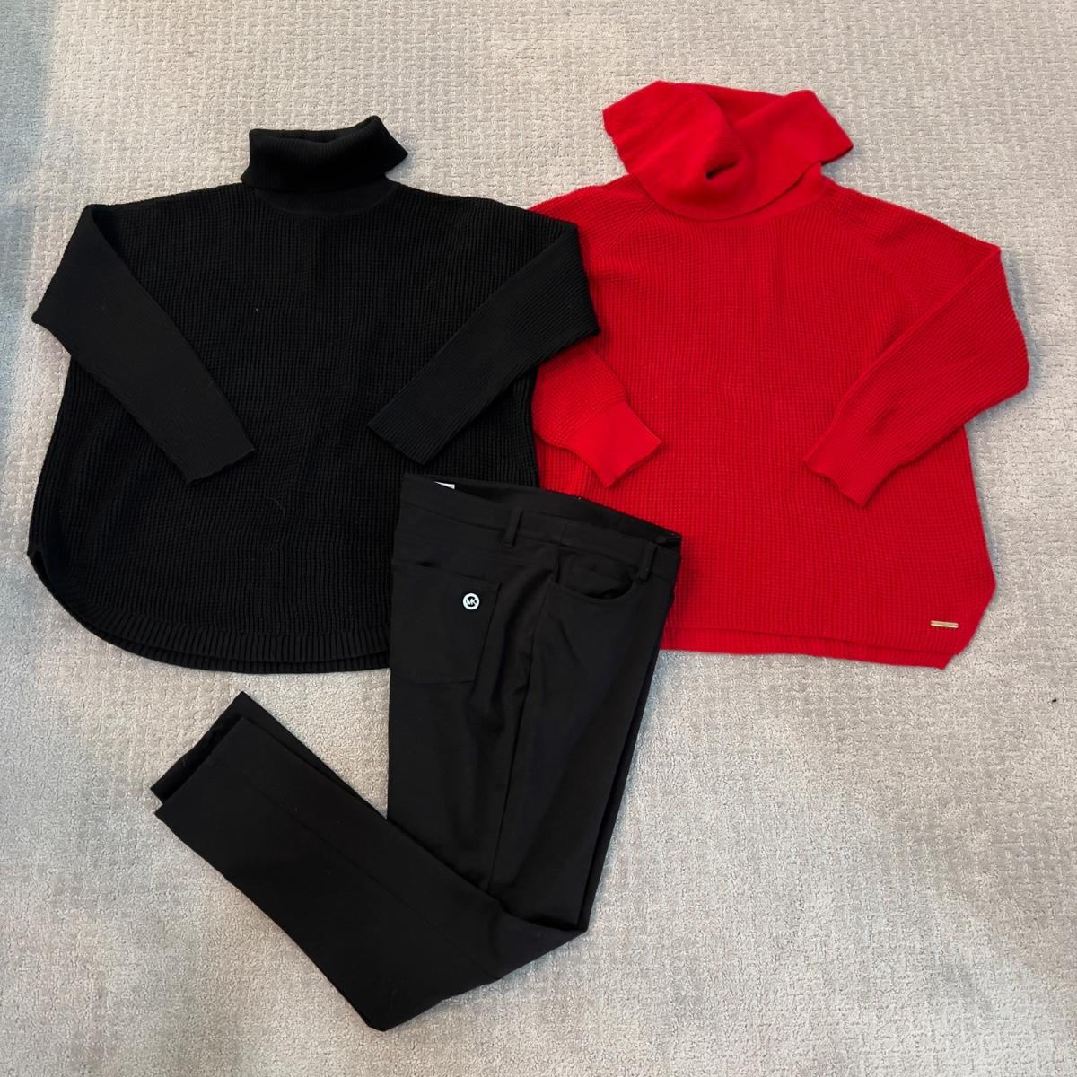 Two Pull over Sweaters with necks and one pair of Pants size 14