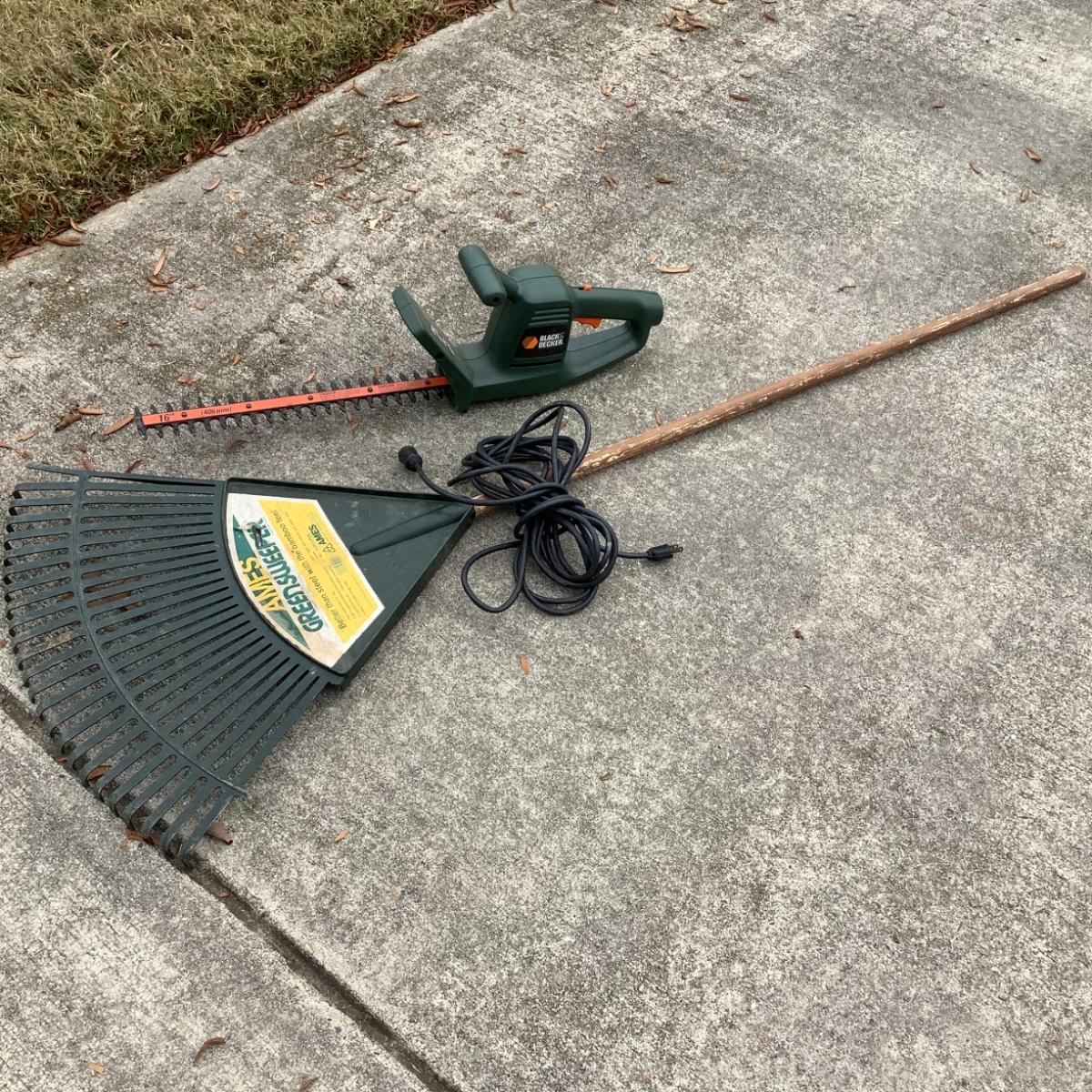 518 B&D Hedge Trimmer, Extension Cord & Rake