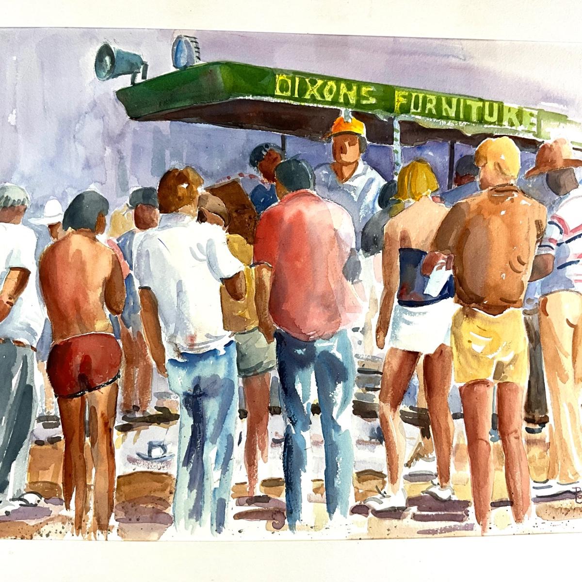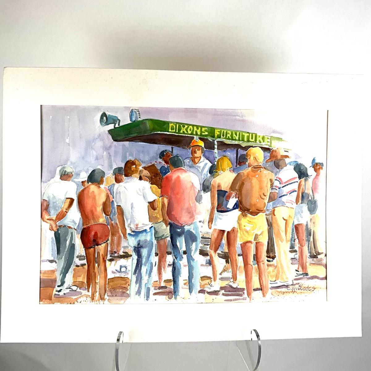 518 Original Watercolor of Dixon's Furniture Auction by Peggy Blades