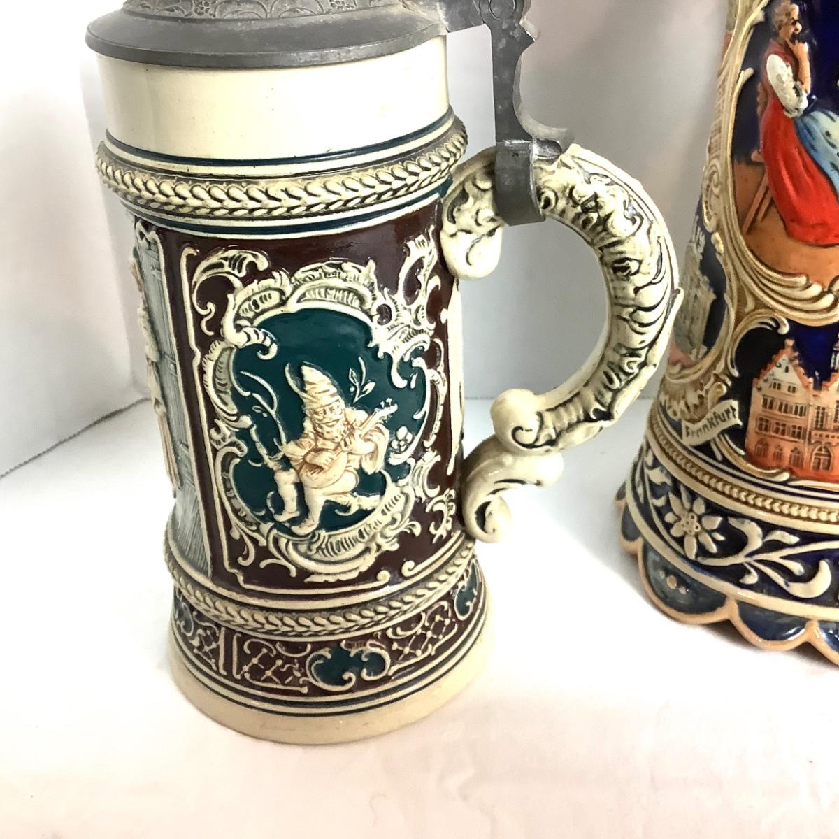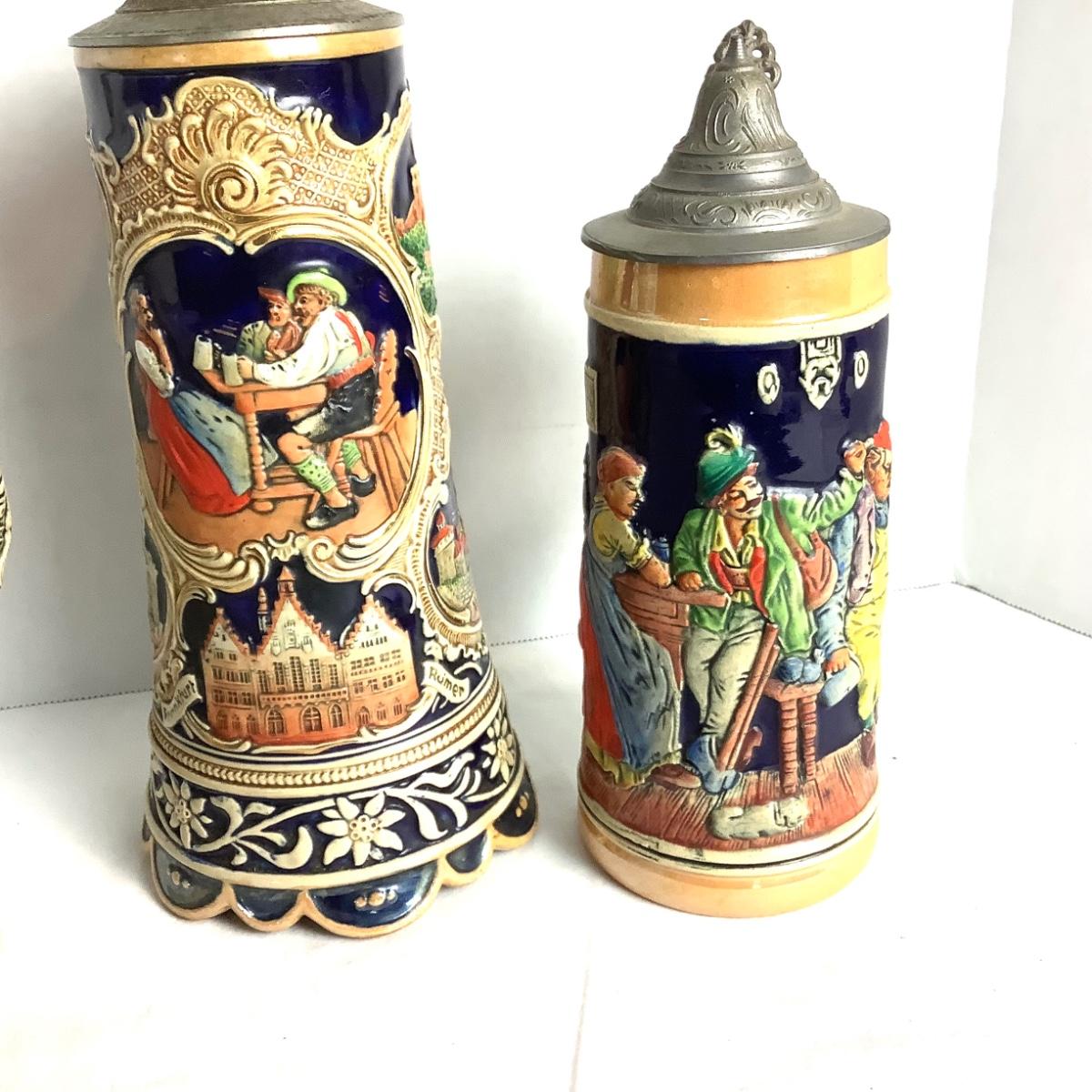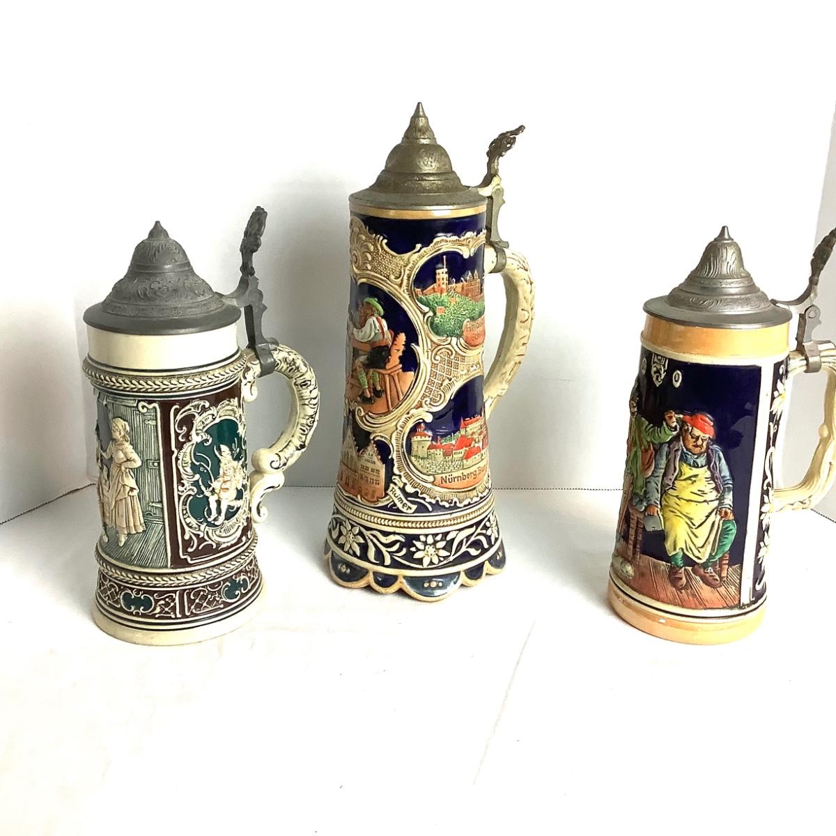 Middle stein is a Swiss music box, does not work. Other two steins are German
