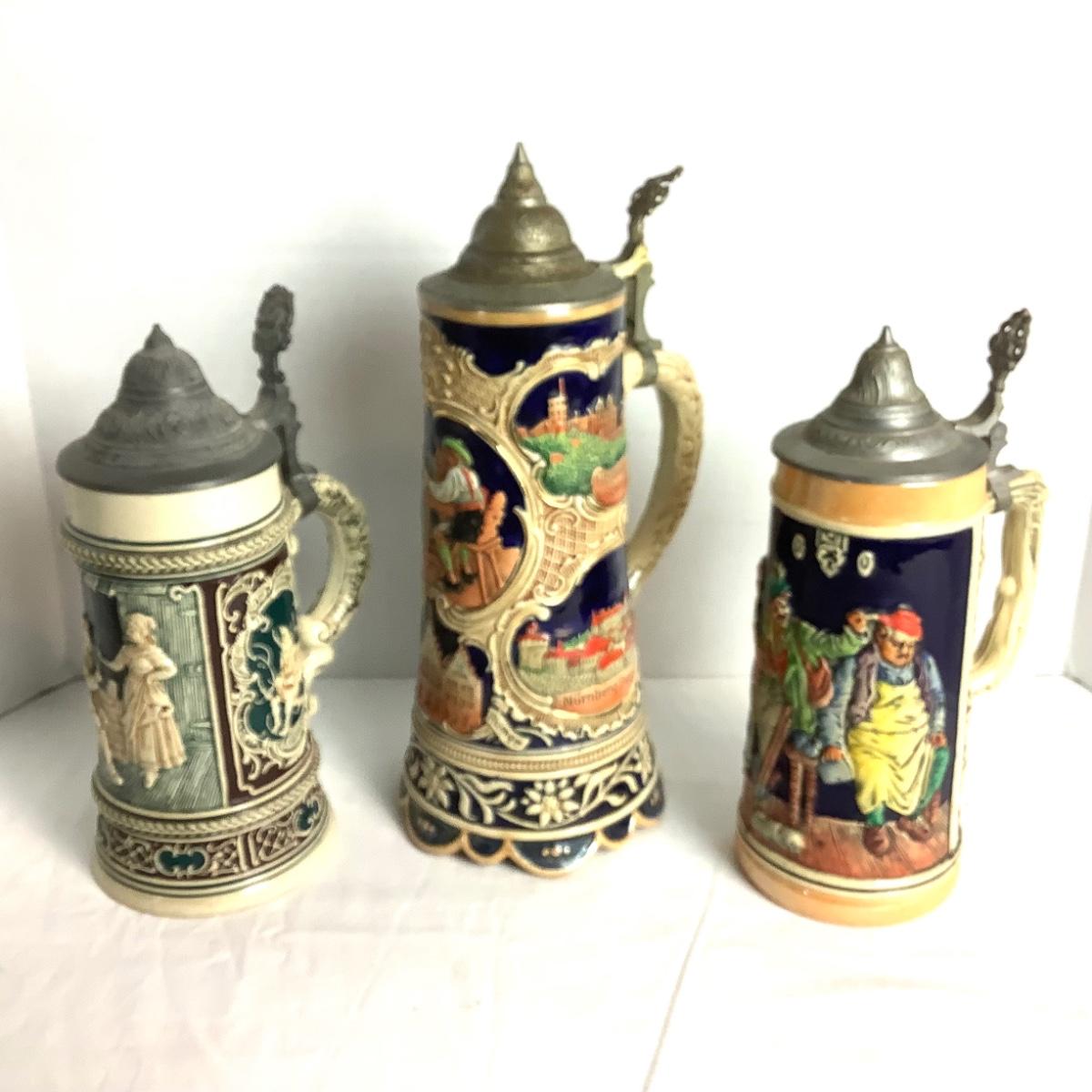 518 Set of 3 Vintage German & Swiss Beer Steins