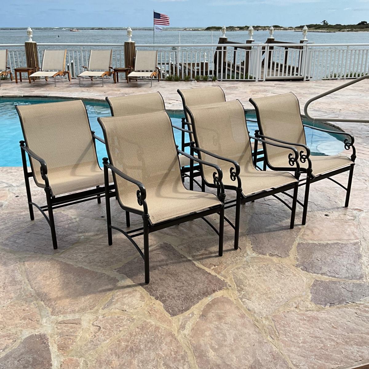 518 Set of 6 WOODARD Cast Aluminum Sling Dining Arm Chairs