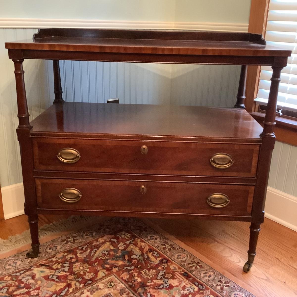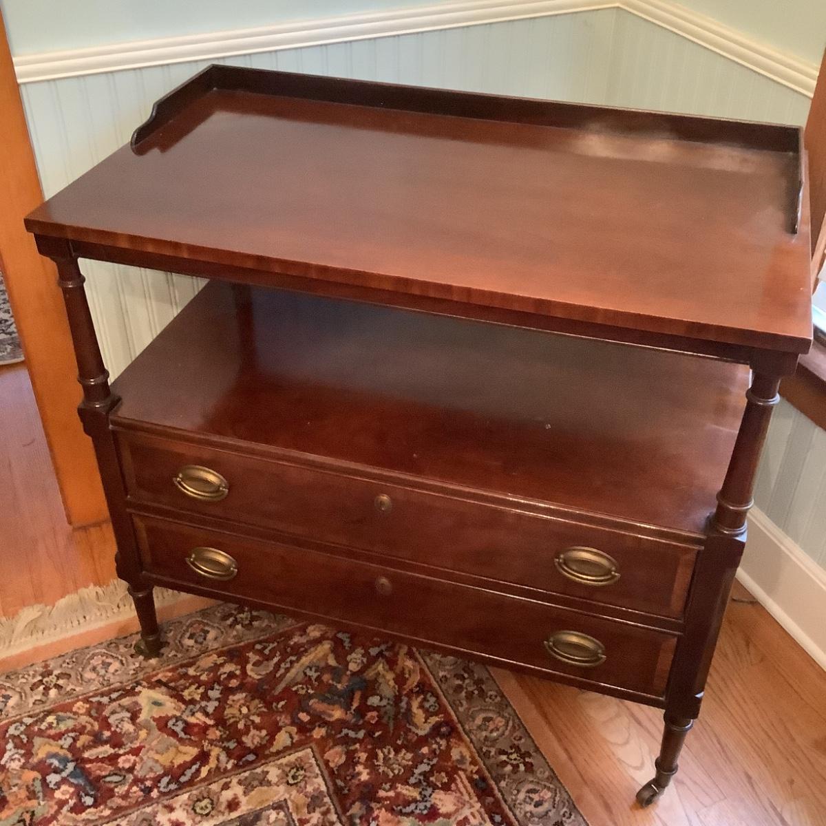 518 Vintage Hickory Chair Co Sheraton Style Mahogany Rolling Bar Buffet Server