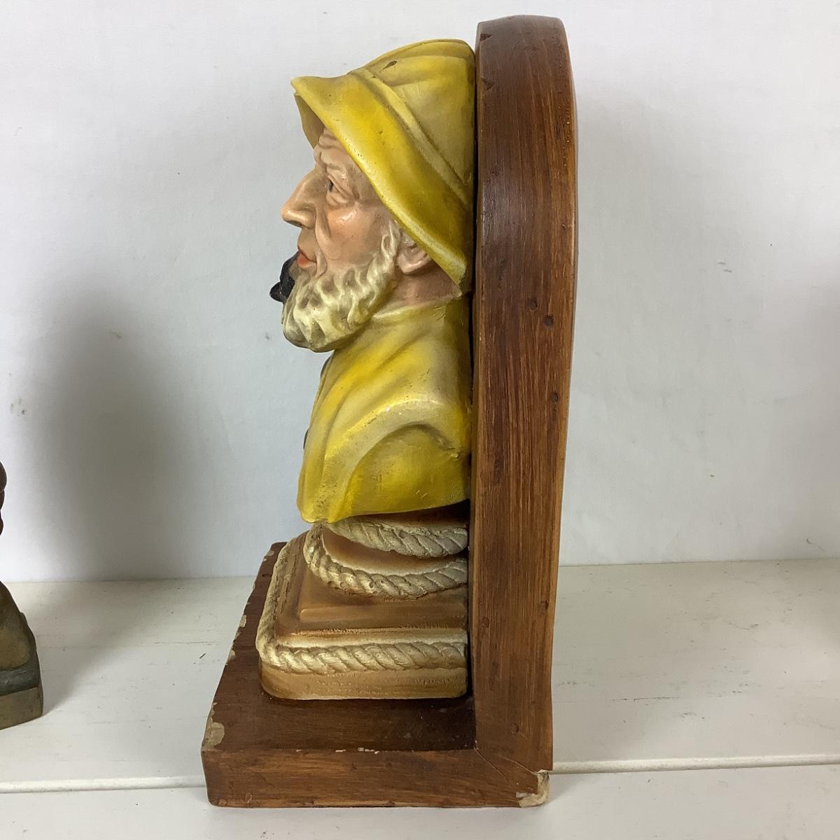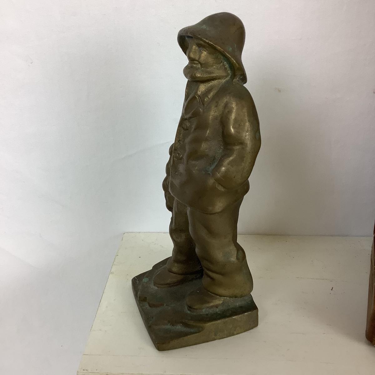 5180 Assorted Brass Lot Candle Stick Holders, Oyster Bowl, Fisherman Figure & Bookend