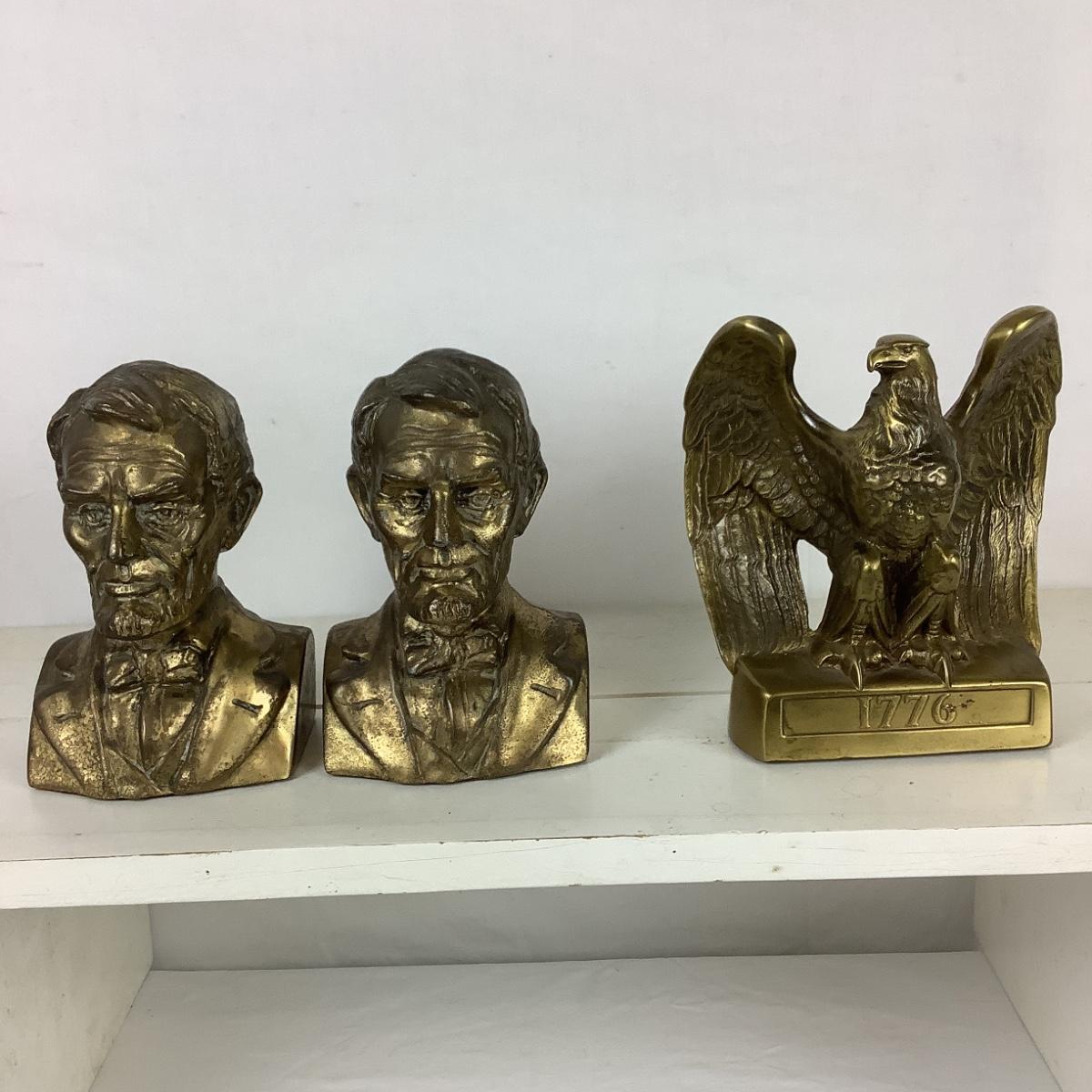 Vintage Abe Lincoln Bust Bookends & P.M. Craftsman Symbol of our Nation Eagle Decor