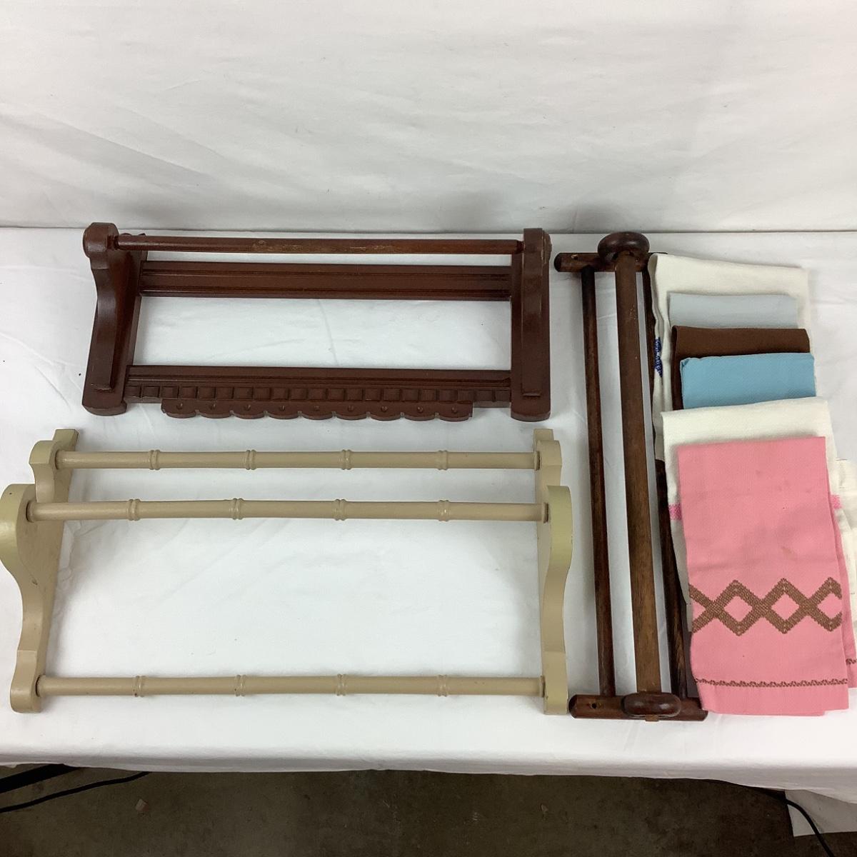Towel Bars w/Vintage Hand Embroidered Wash Cloths