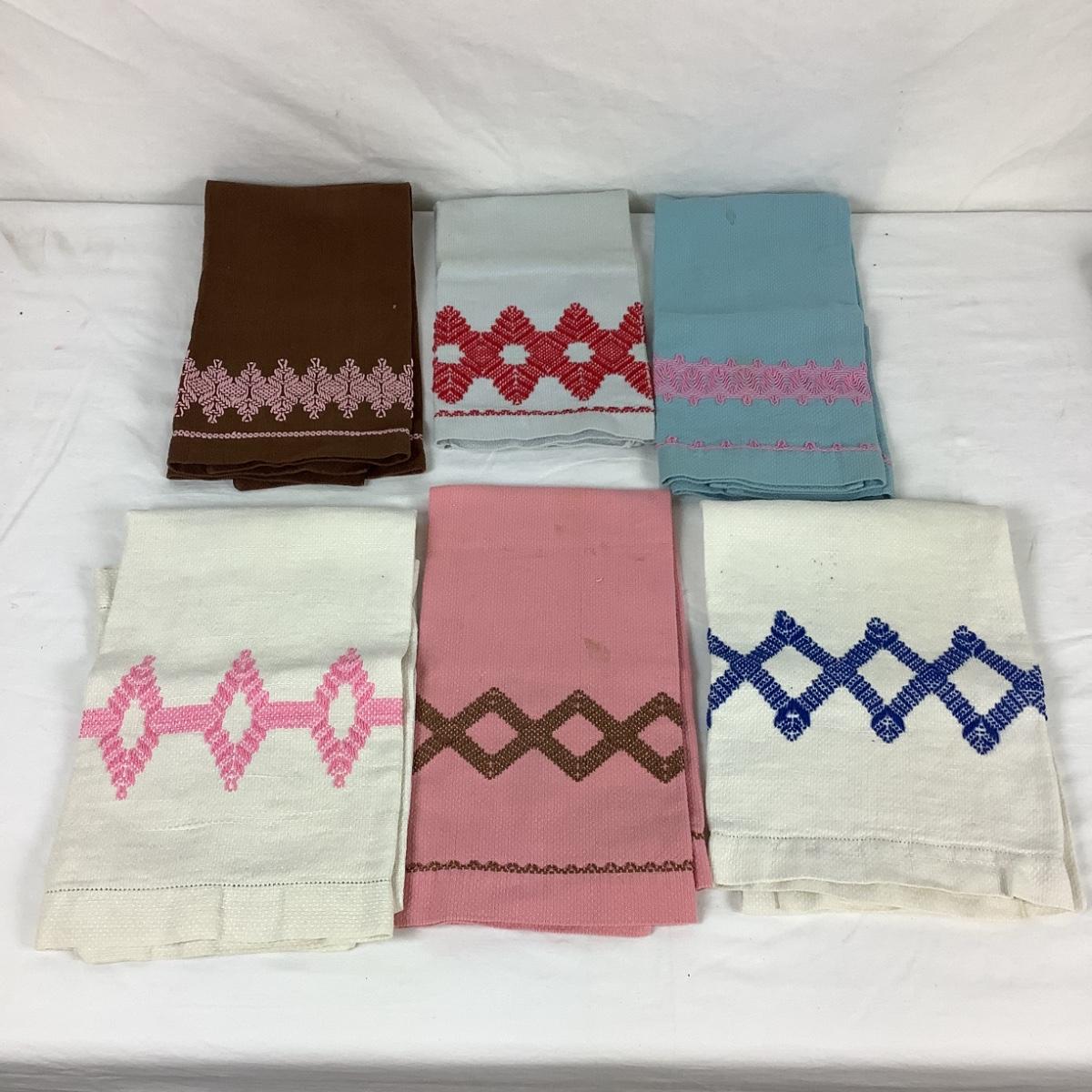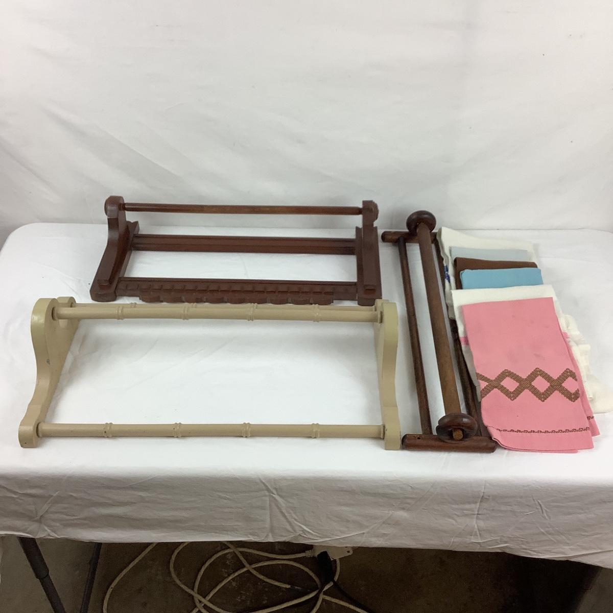 5189 Towel Bars w/Vintage Hand Embroidered Wash Cloths