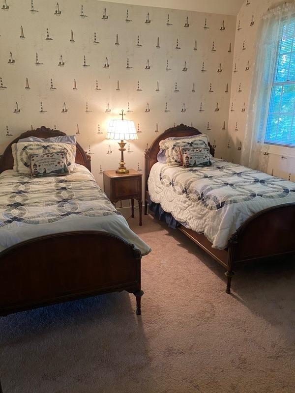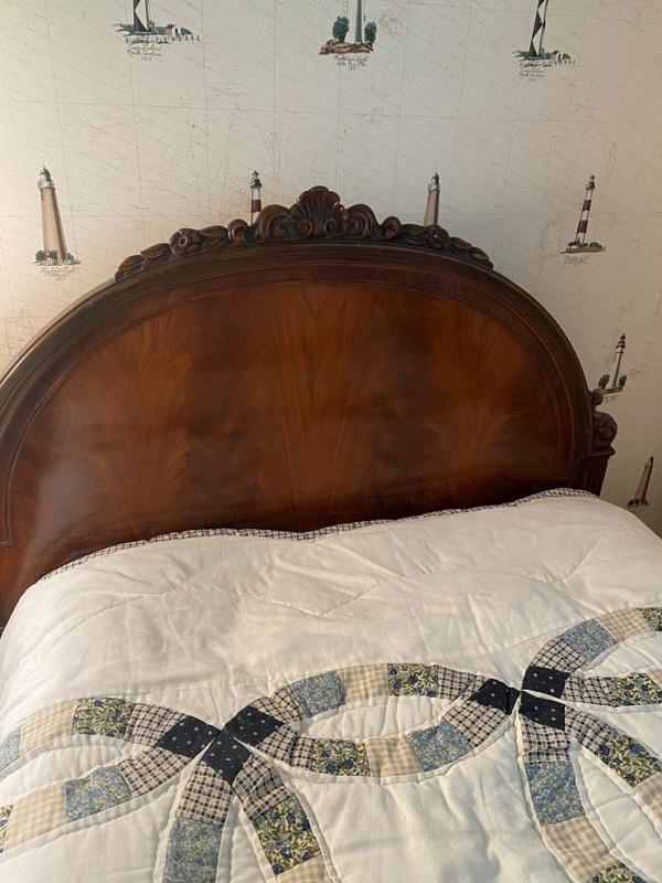 Pair of Art Deco Twin Beds, mattress and box springs are included as well as matching bedding, headboards measure 45” Tall x 42.5” Wide foot boards measure 28.5” Ta;; x 43.5” Wide