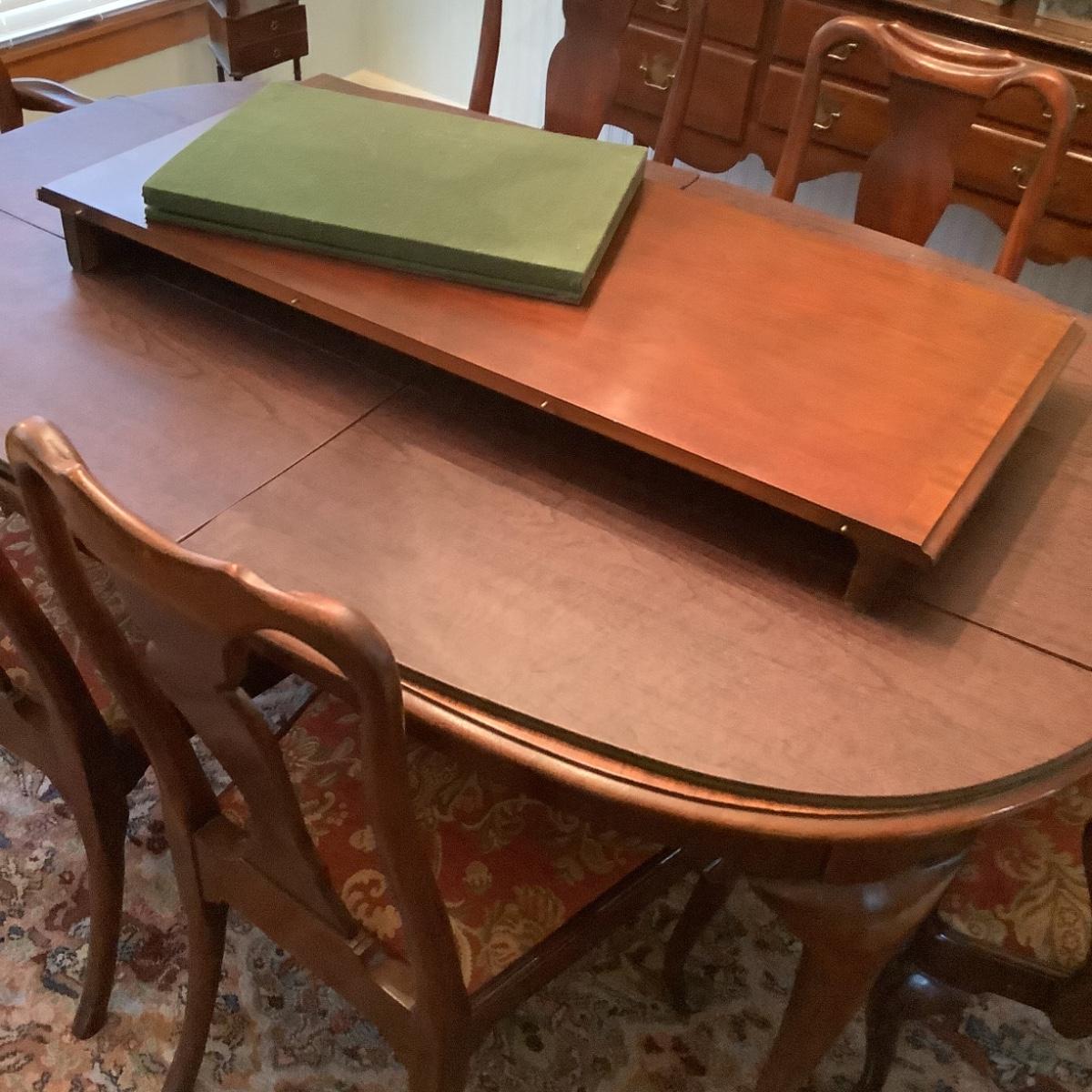 Dining room table comes with 2 extra leaves and padding