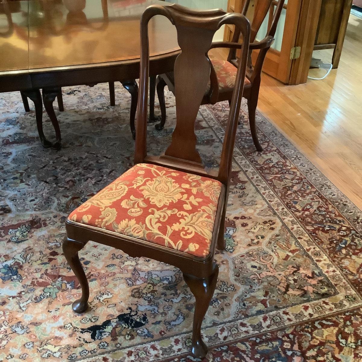 Chairs are two arm chairs and 4 dining chairs with floral upholstered seats in good condition