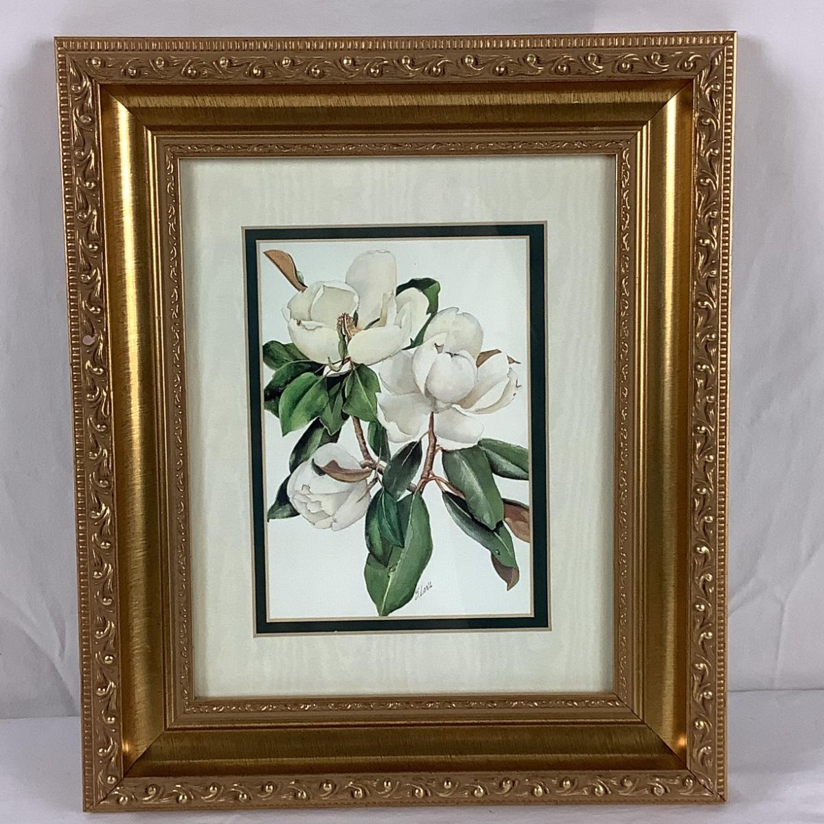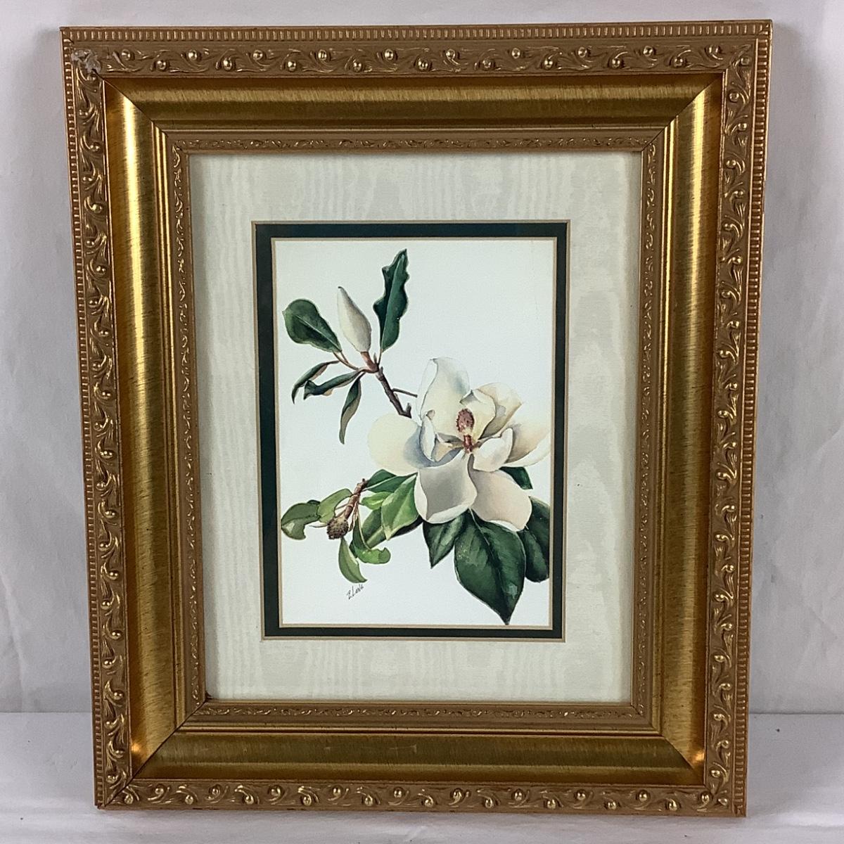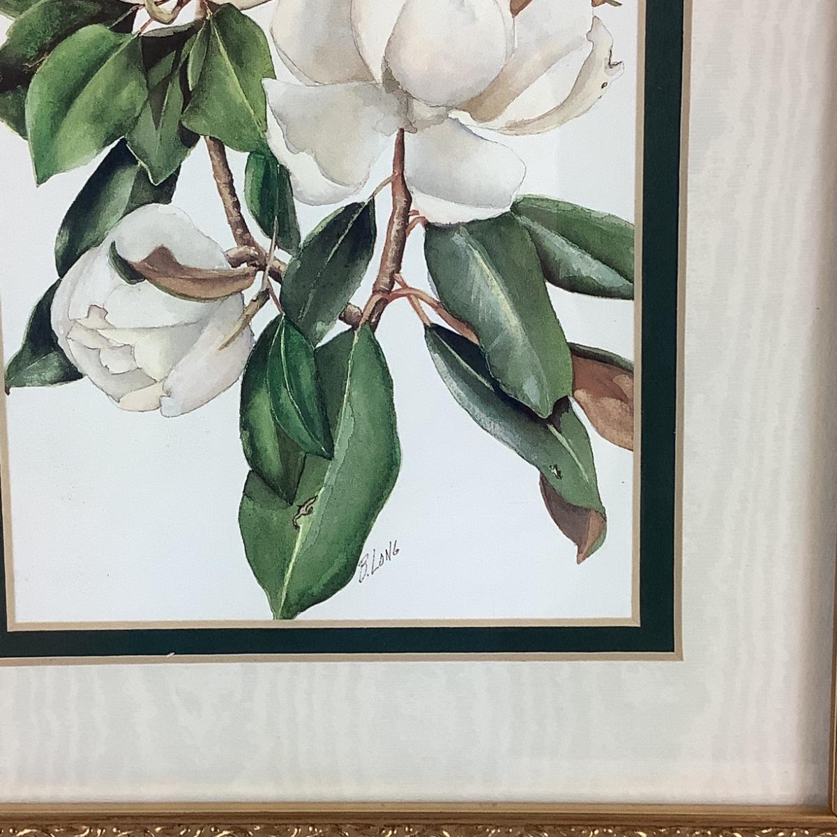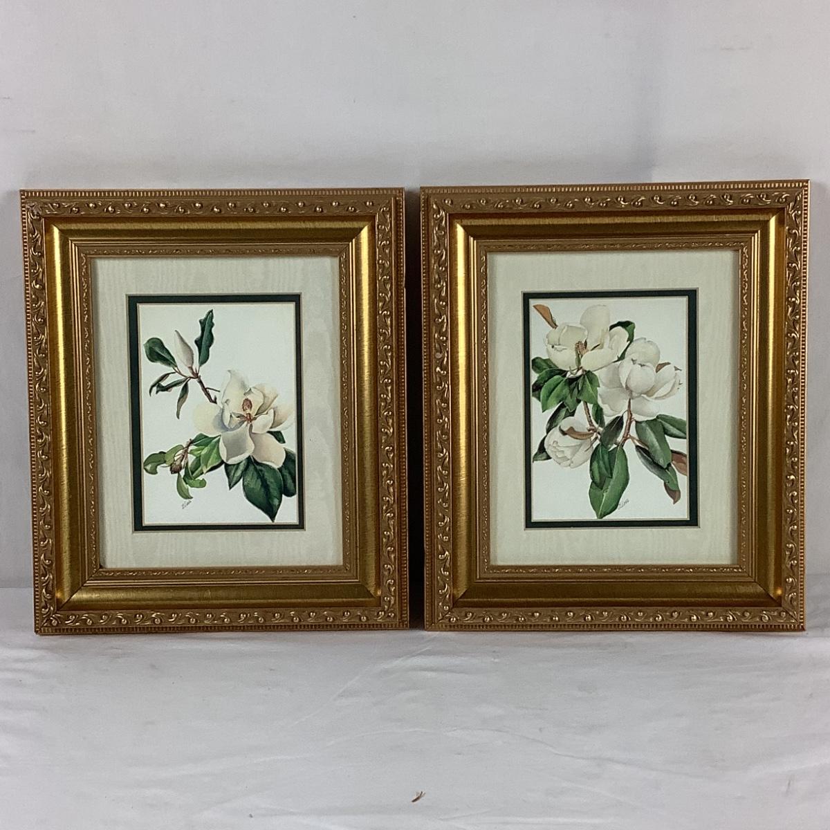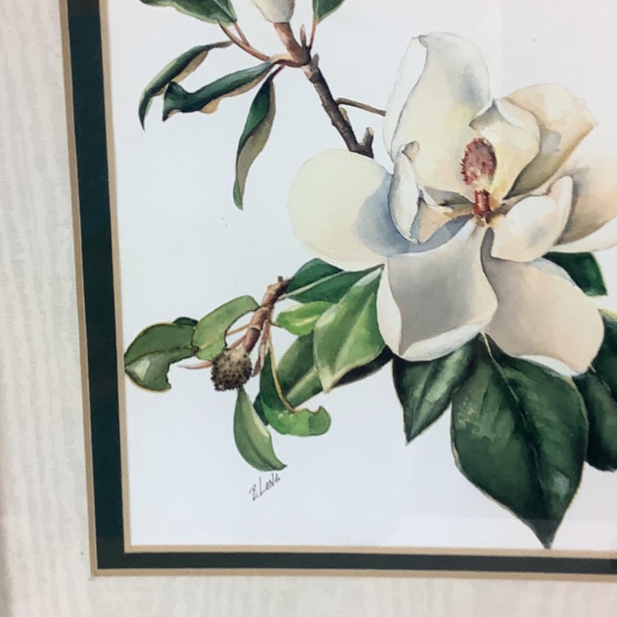 Framed Double Matted Botanical Prints by B. Long. Both measuring