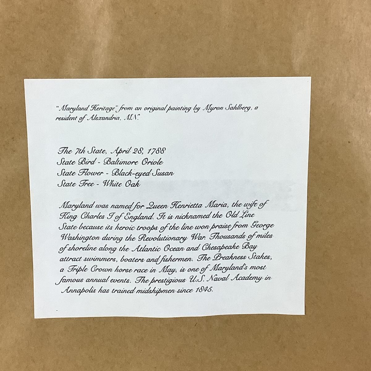 "Maryland Heritage" Print by Myron Sahlberg (16"x 13") Gold Frame Double Matted