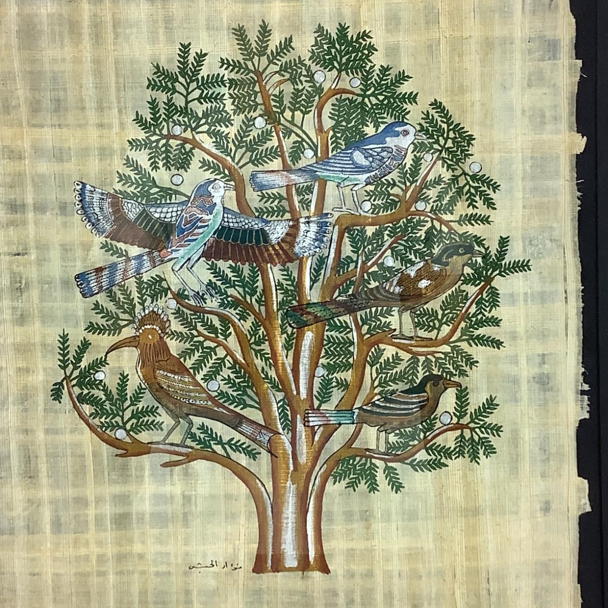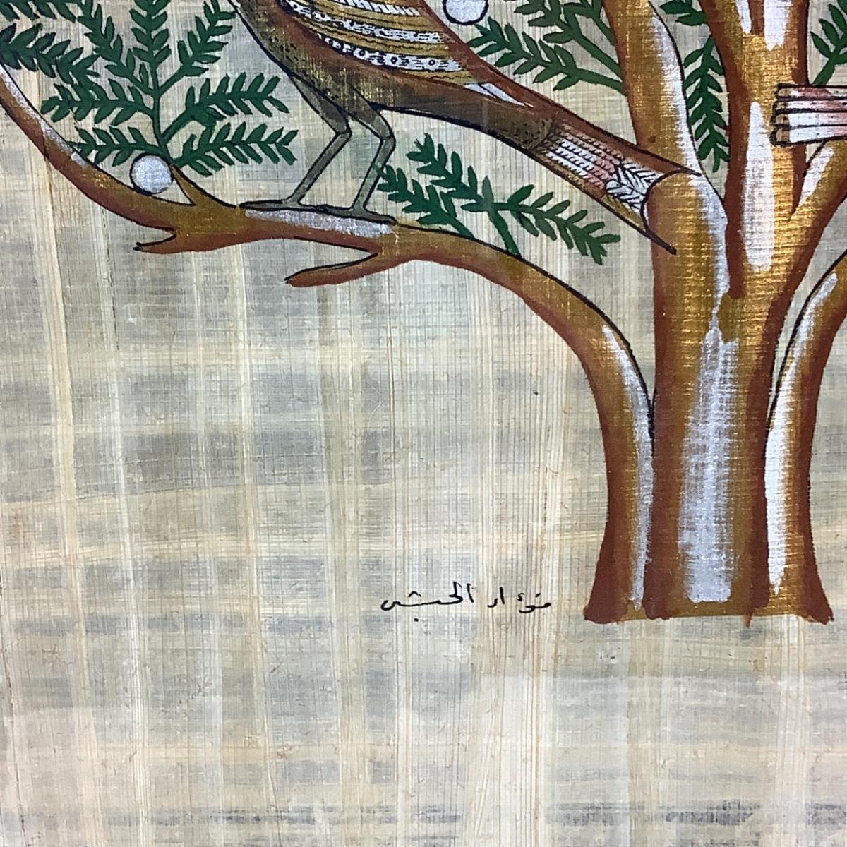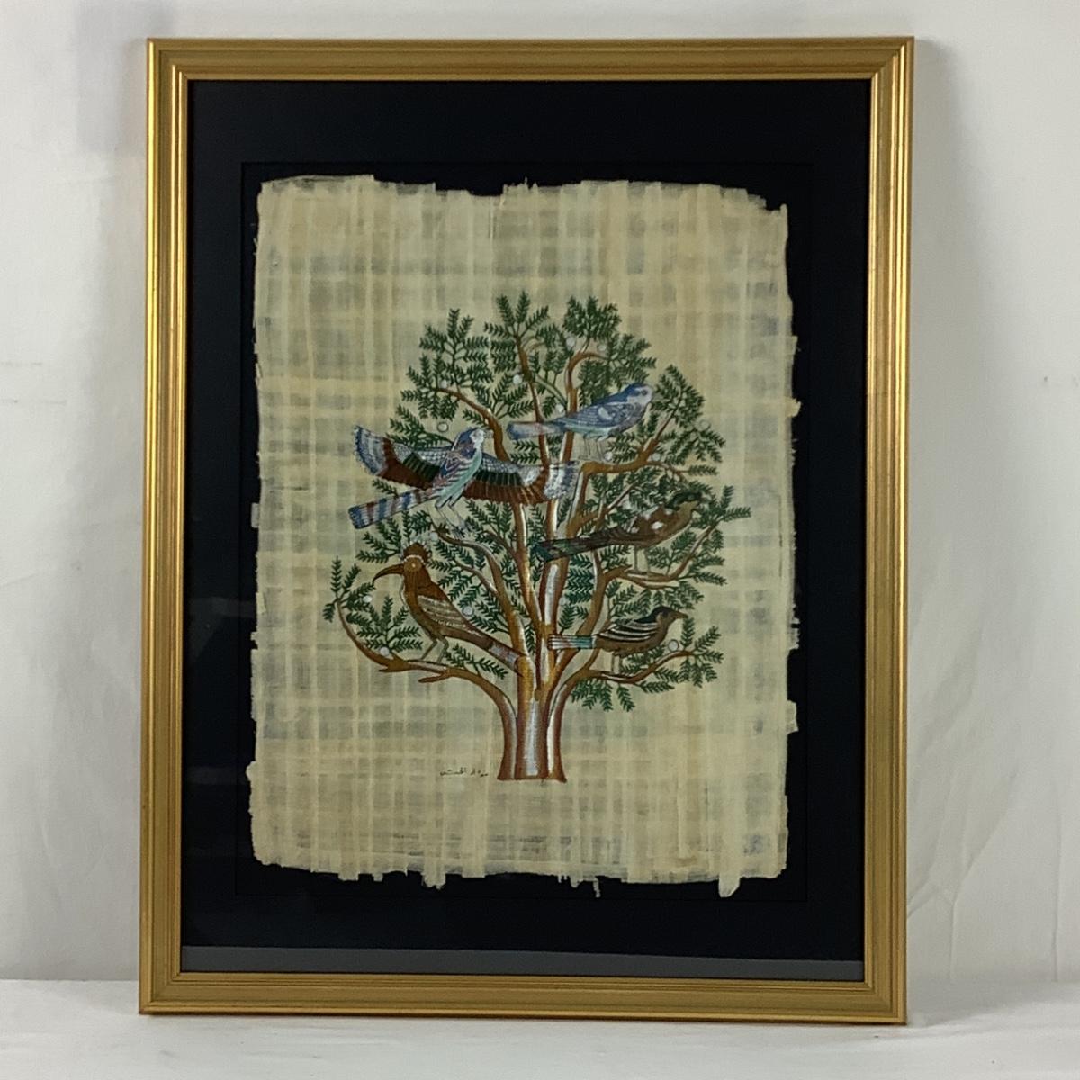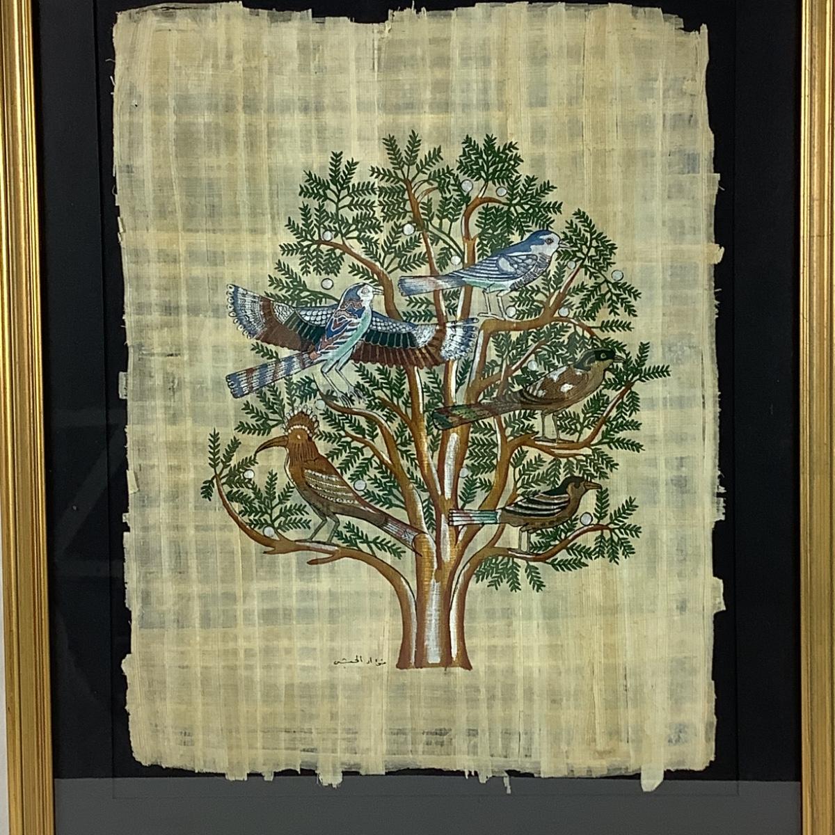 Signed Egyptian Papyrus Oriental Framed Art made from Papyrus Plant