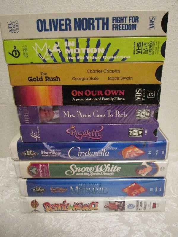 Mrs. 'Arris Goes to Paris with Angela Lansbury; On Our Own, songs by Alan Osmond and perfored by the Osmond Boys; Rigoletto, by Feature Films for Families; The Gold Rush with Charles Chaplin (Charlie Chaplin as the Little Tramp); Milli Vanilli in Motion; Oliver North, Fight for Freedom; Walt Disney's Classic Cinderella; Walt Disney's Masterpiece Snow White and the Seven Dwarfs; A Walt Disney Classic The Little Mermaid; Warner Brother's Dennis the Menance