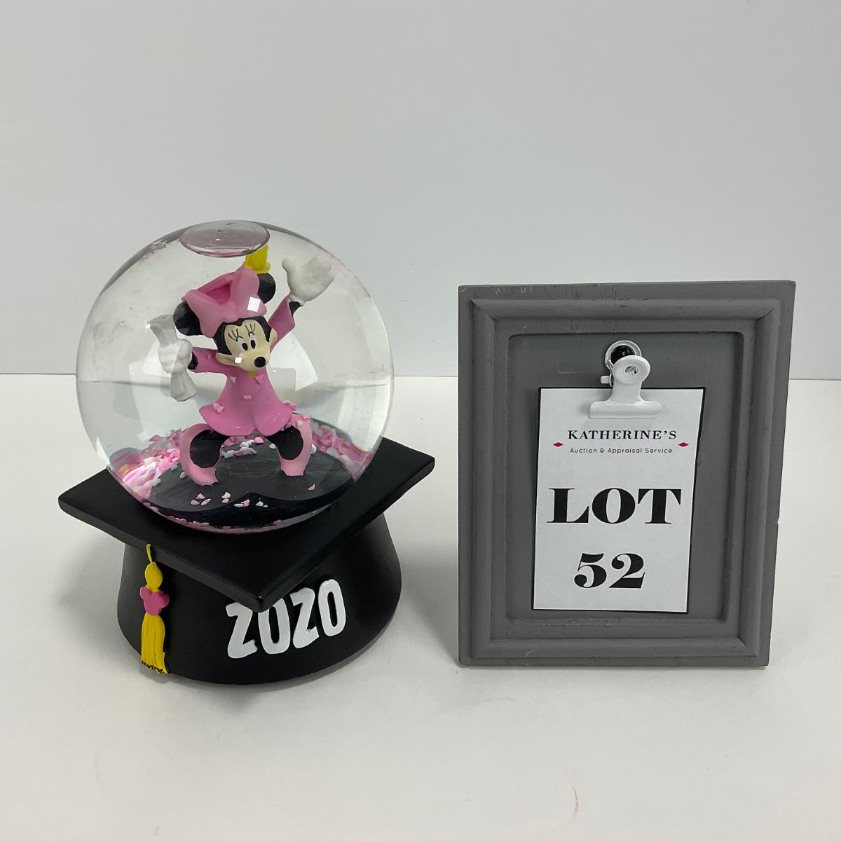 One 2020 Minnie Mouse Graduation music snow globe. No Box believed to be in good shape but not guaranteed. Please see photos for details and condition. Any condition statement is given as a courtesy to a client, is an opinion, and should not be treated as a statement of fact. Reference to condition written, oral or within a condition report shall not be regarded as a full account of condition and may not include all defects, alterations, or restorations. Absence of a condition report does not imply a lot is flawless or lacking imperfections or damage. Katherine’s Auction & Appraisal Service shall have no responsibility for any error or omission. Returns shall not be accepted on the basis of condition. ::: Shipping is NOT available on this lot. If you have any questions regarding this lot please contact the auctioneer either via this website, by direct email or by phone. PICK UP TIMES and other important information can be found in the TERMS and DESCRIPTION of the auction. Please take a look for pertinent information. Thanks!