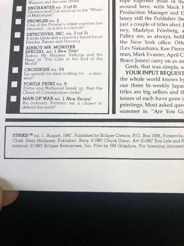 #52 Eclipse Comics- STRIKE #1 First issue l987