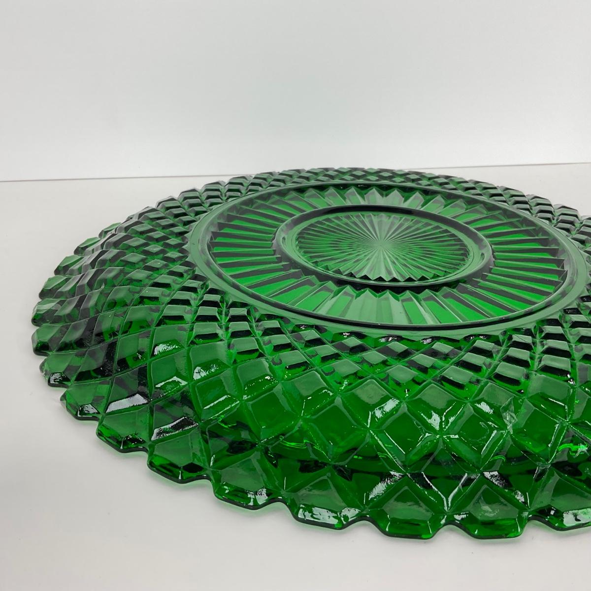 -52- GLASSWARE | Anchor Hocking Waterford Waffle | Green Depression Relish & Inserts Set