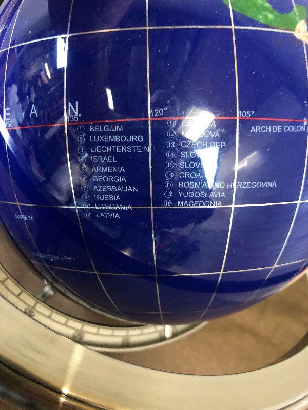 9" Diameter 14" Tall Nice Globe for any library, office or study. Appears to be inlayed natural materials