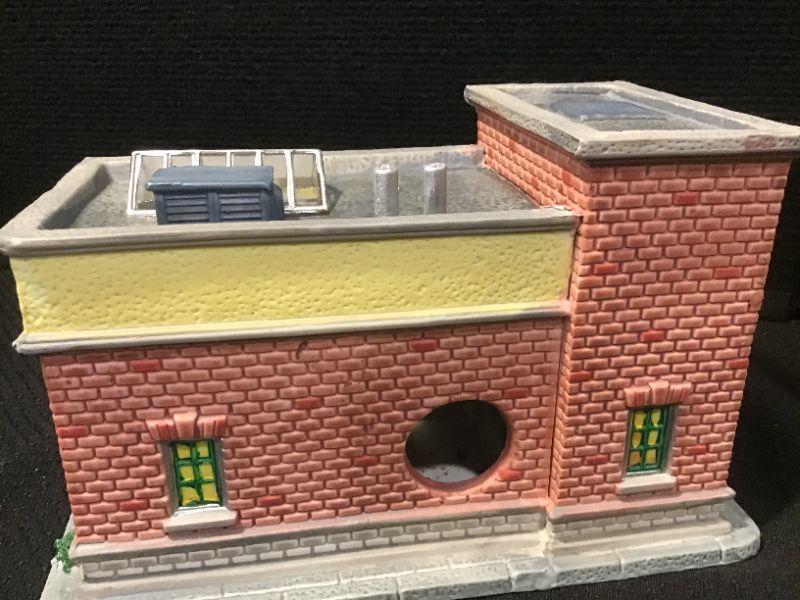 Missing bushes to right of door, light bulb and pin to attach sign (could be glued). See pictures.