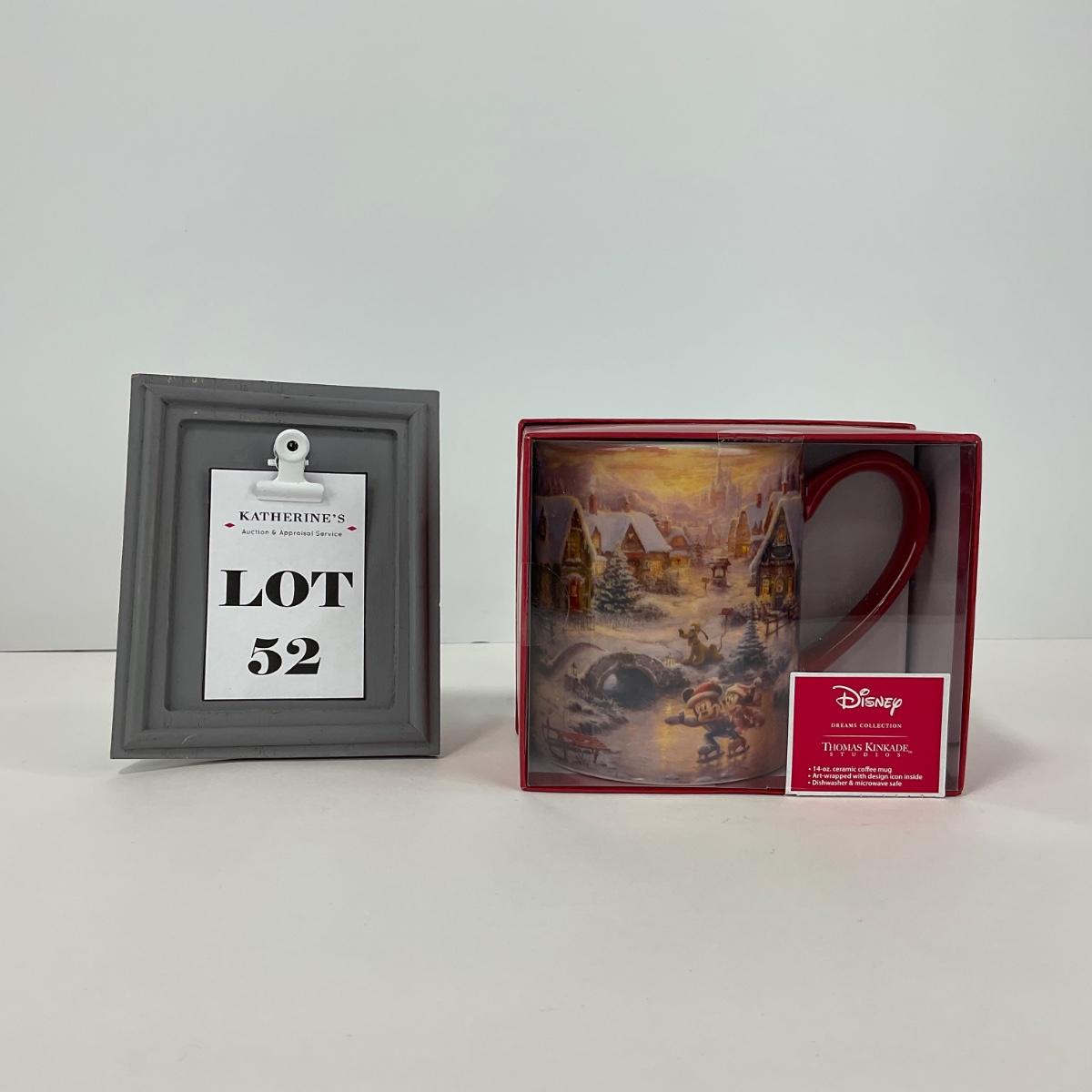 One Thomas Kinkade Studio Mickey Mouse Holiday mug in box. Please see photos for details and condition. Any condition statement is given as a courtesy to a client, is an opinion, and should not be treated as a statement of fact. Reference to condition written, oral or within a condition report shall not be regarded as a full account of condition and may not include all defects, alterations, or restorations. Absence of a condition report does not imply a lot is flawless or lacking imperfections or damage. Katherine’s Auction & Appraisal Service shall have no responsibility for any error or omission. Returns shall not be accepted on the basis of condition. ::: Shipping is available on this lot. If you require shipping you must let us know at the close of the auction. We will coordinate with you after the item has been won. Shipping fees will include insurance up to or exceeding the value of all items being mailed. If you have any questions regarding this lot please contact the auctioneer either via this website, by direct email or by phone. PICK UP TIMES and other important information can be found in the TERMS and DESCRIPTION of the auction. Please take a look for pertinent information. Thanks!