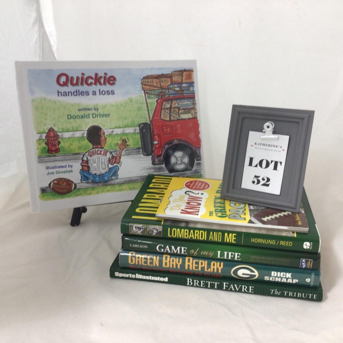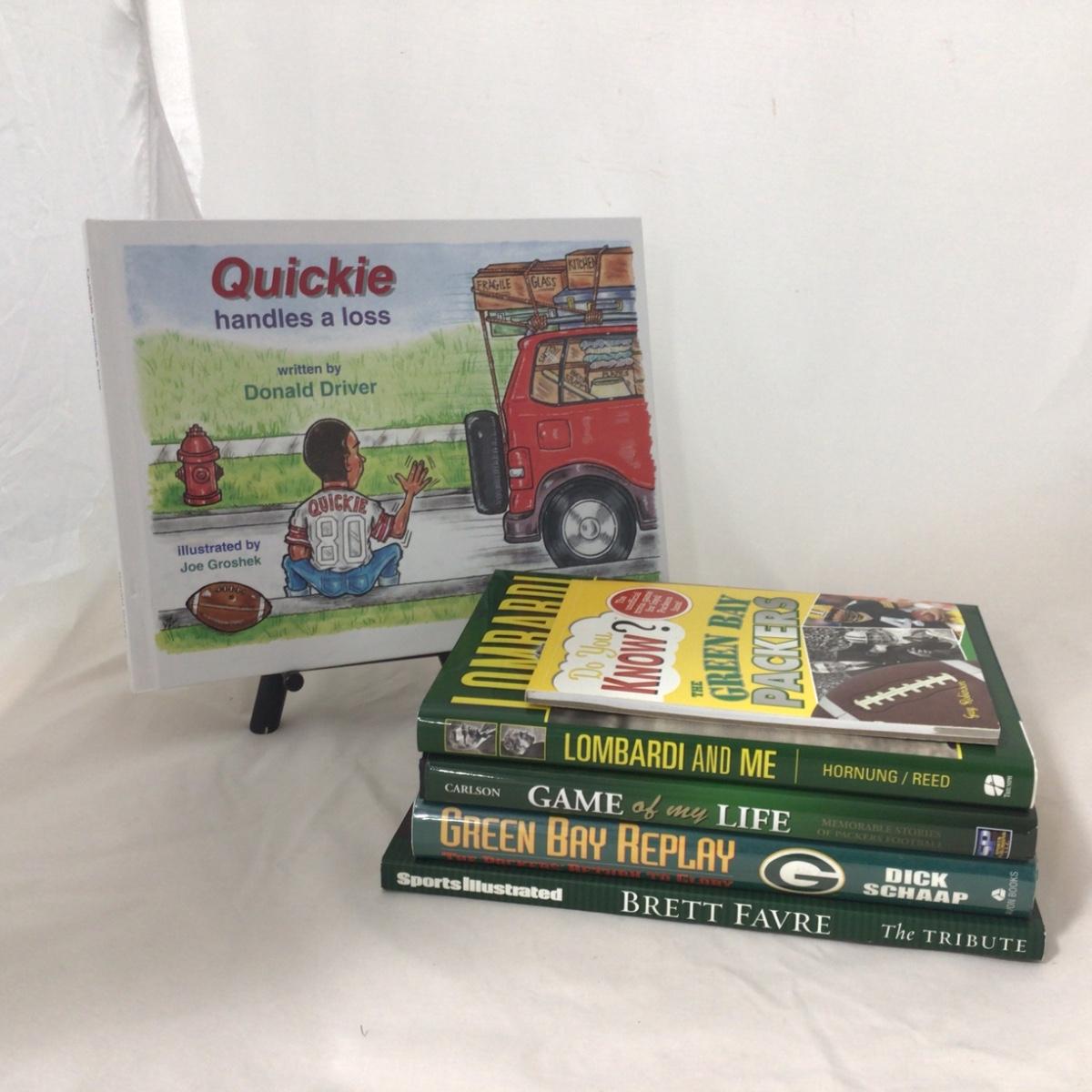 Six Packers and football books. Please see photos for details and condition. ::: Shipping is available on this lot. If you require shipping you must let us know at the close of the auction. We will coordinate with you after the item has been won. Shipping fees will include insurance up to or exceeding the value of all items being mailed. If you have any questions regarding this lot please contact the auctioneer either via this website, by direct email or by phone. PICK UP TIMES and other important information can be found in the TERMS and DESCRIPTION of the auction. Please take a look for pertinent information. Thanks!