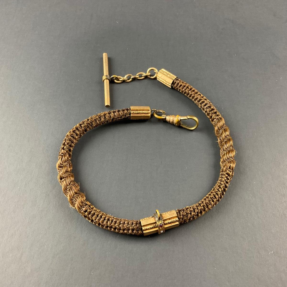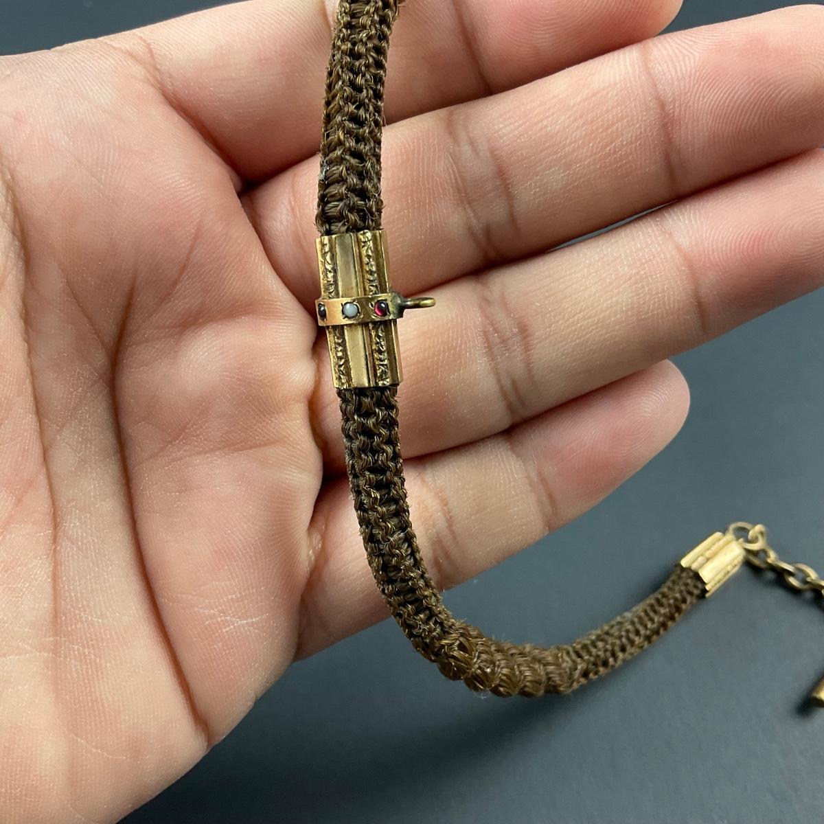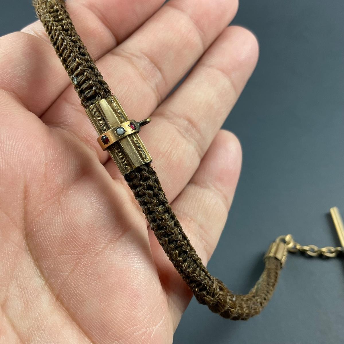 -52- WATCH FOB | Mourning Hair Art Watch Fob With Ruby & Opal Stones