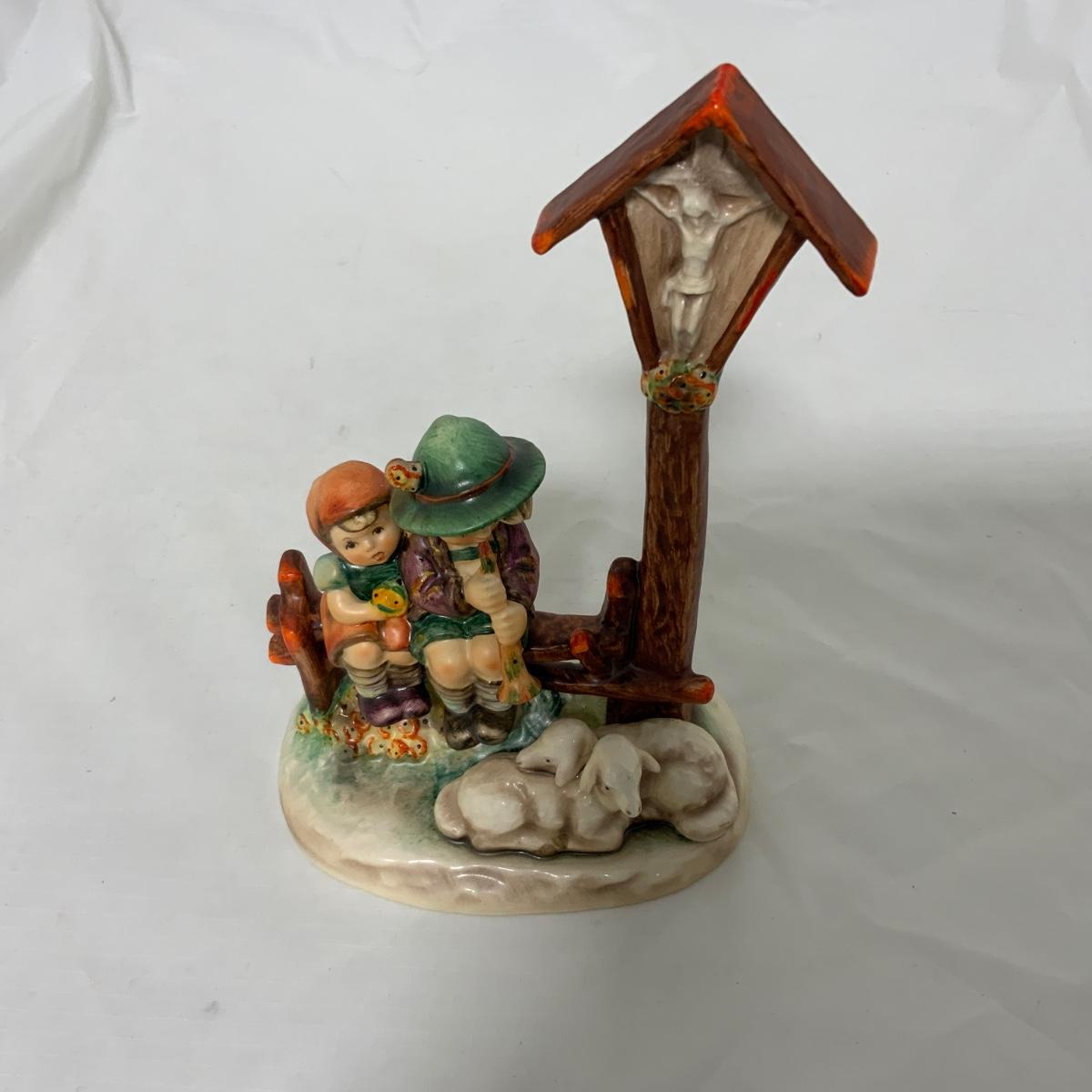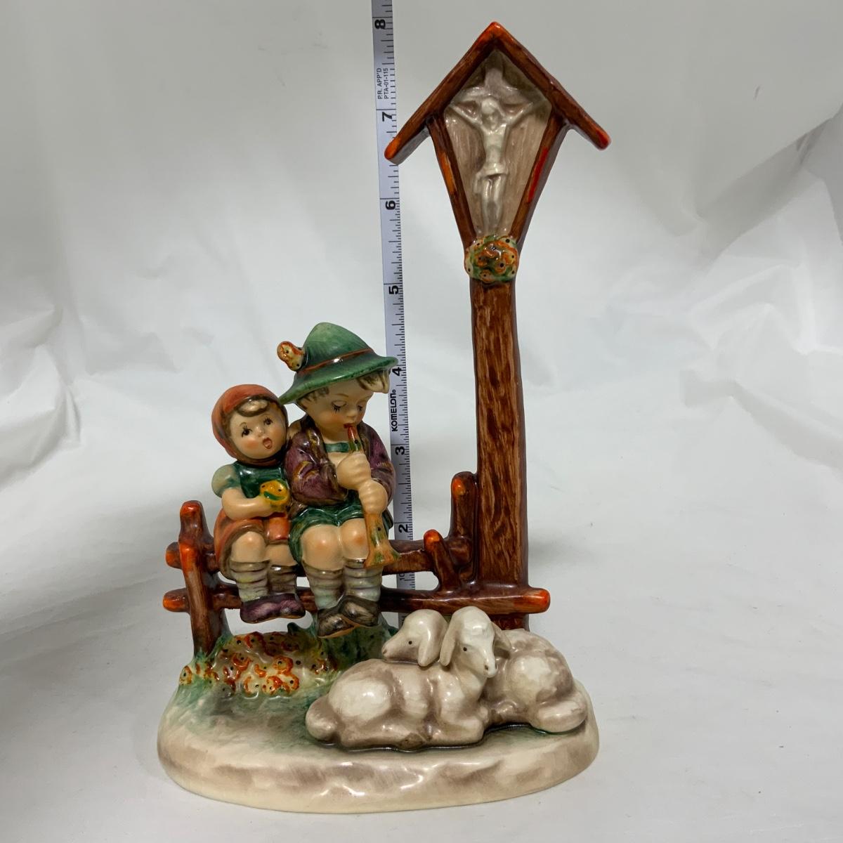 How sweet is this picture? Wayside Devotion, Hum 28/II. TMK-5. Please see photos for details and condition. Crazing Noted. ::: Shipping is available on this lot. If you require shipping you must let us know at the close of the auction. We will coordinate with you after the item has been won. Shipping fees will include insurance up to or exceeding the value of all items being mailed. If you have any questions regarding this lot please contact the auctioneer either via this website, by direct email or by phone. PICK UP TIMES and other important information can be found in the TERMS and DESCRIPTION of the auction. Please take a look for pertinent information. Thanks!