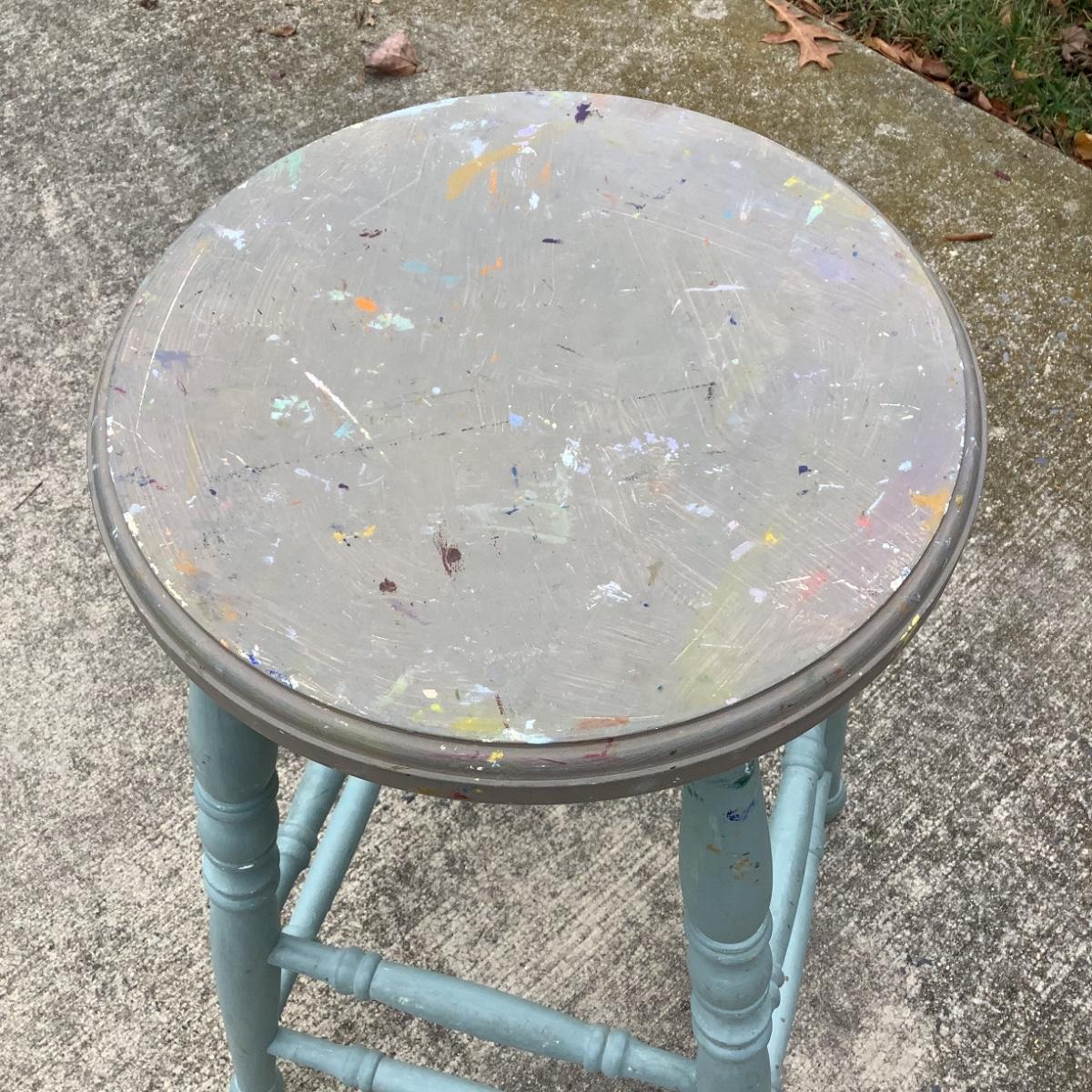 stool was garage kept and used for painting so it has paint splatters on the seat and legs