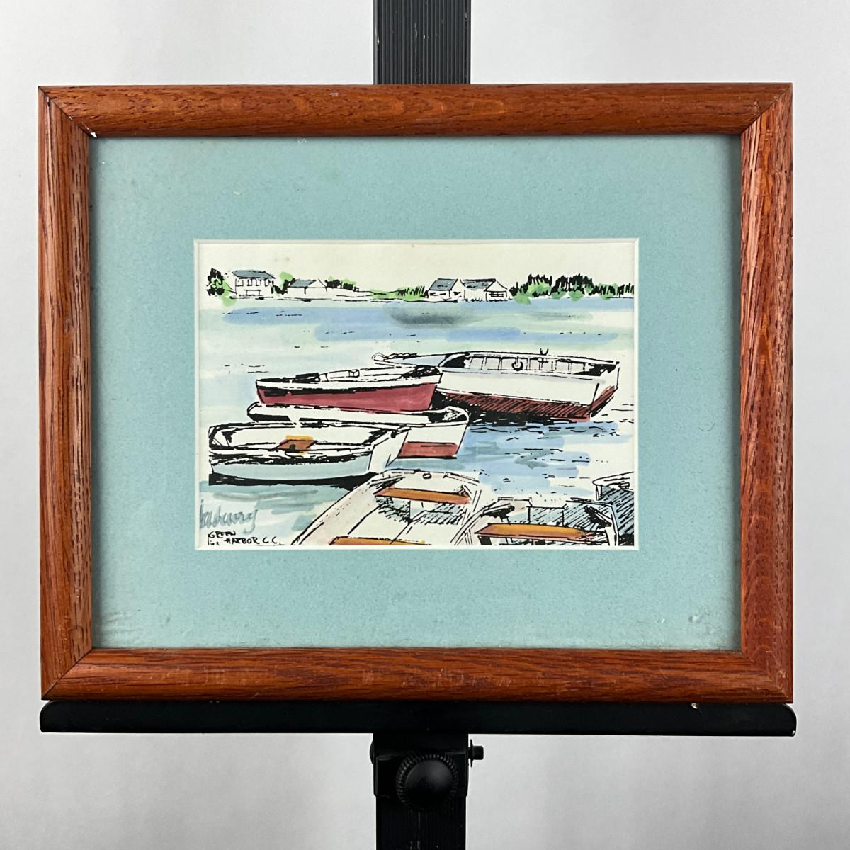520 Signed Hand-Watercolor On Silk Screen "Cape Cod Dinghys"