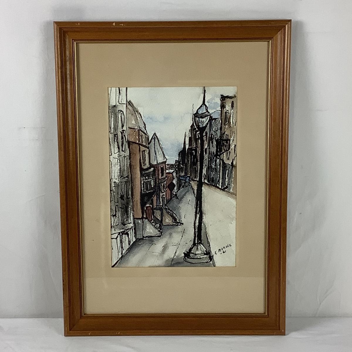 5203 Vintage Impressionist Street Scene Watercolor Original by K. Marols '61