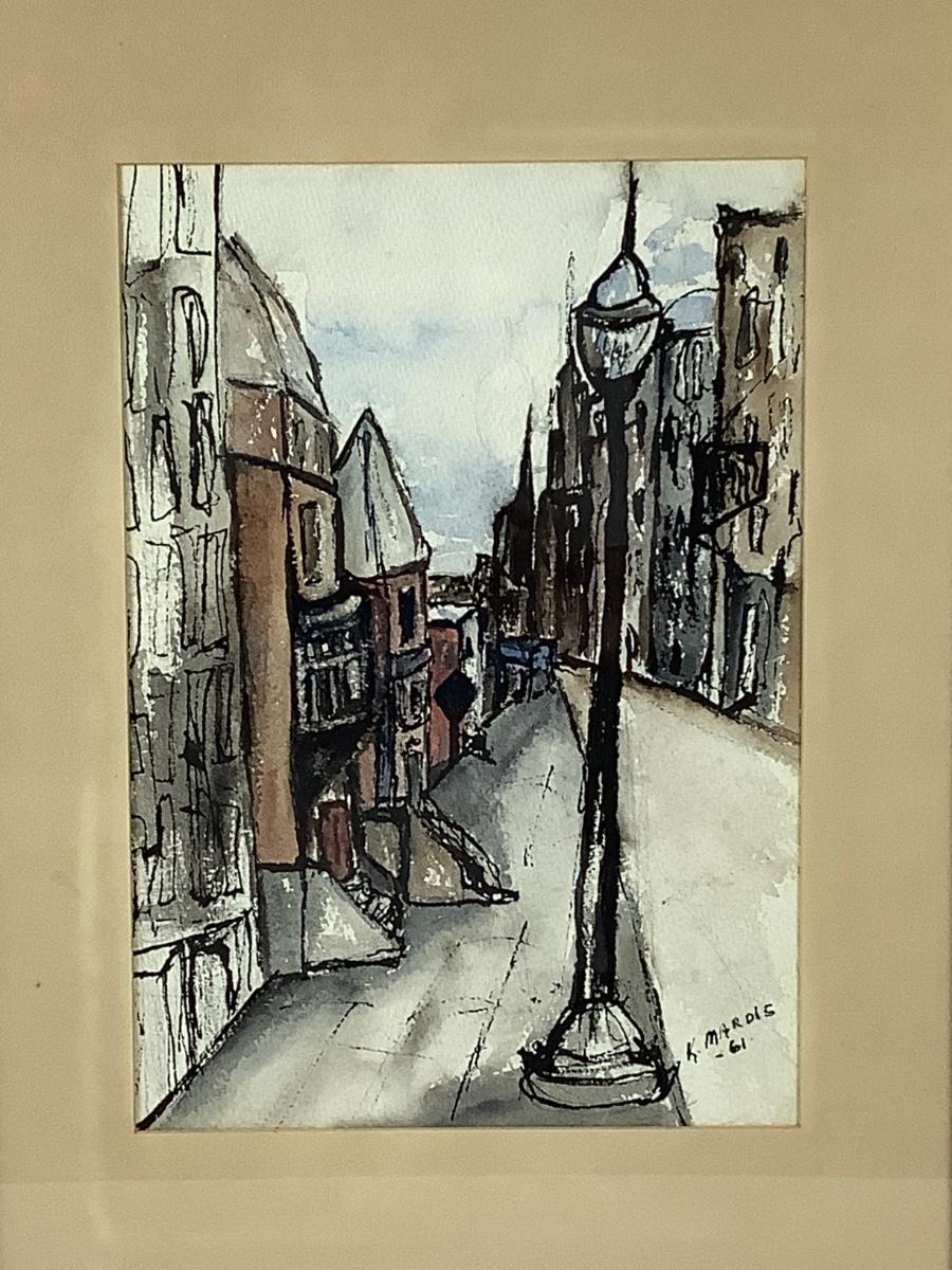Vintage Impressionist Street Scene Watercolor Original by K. Marols '61.