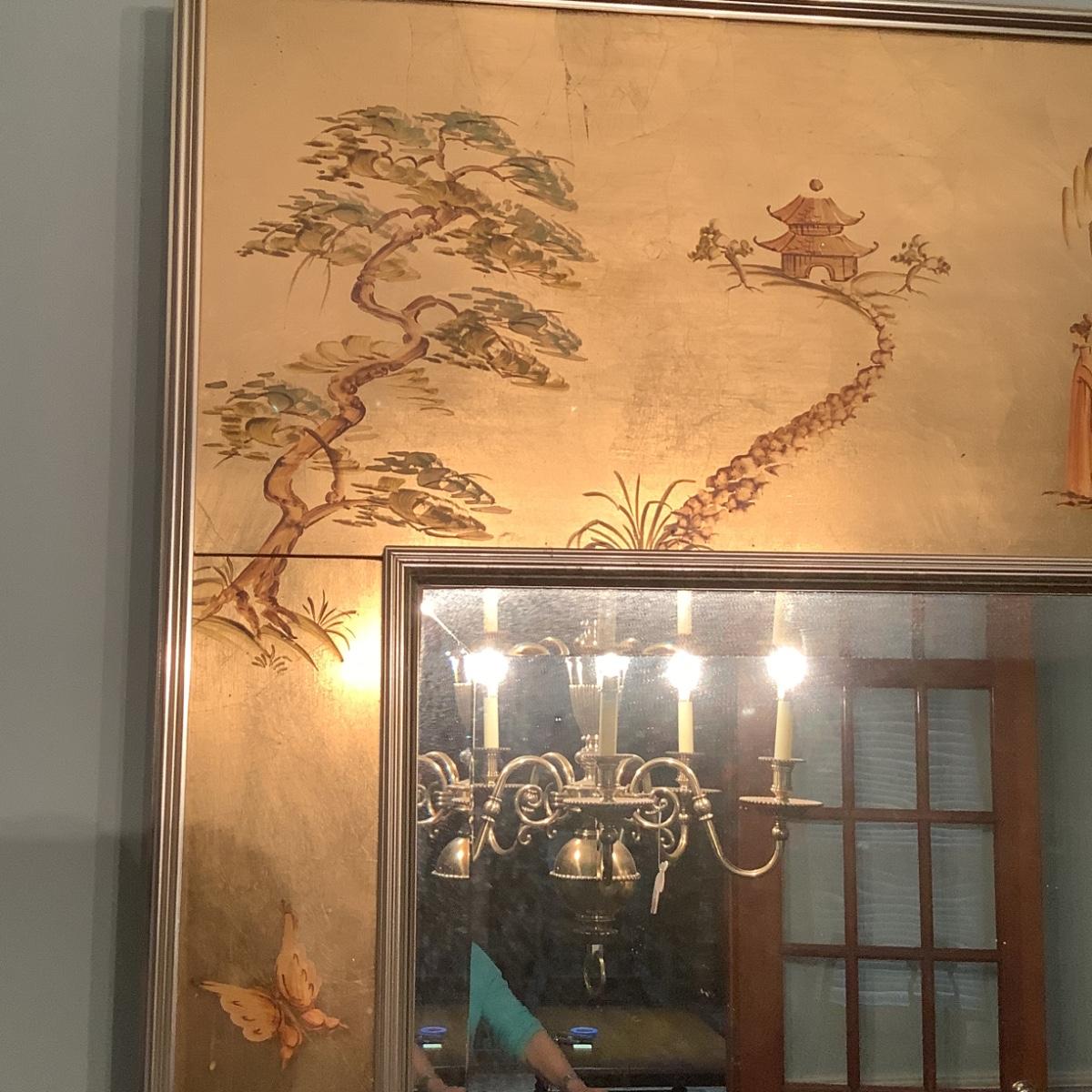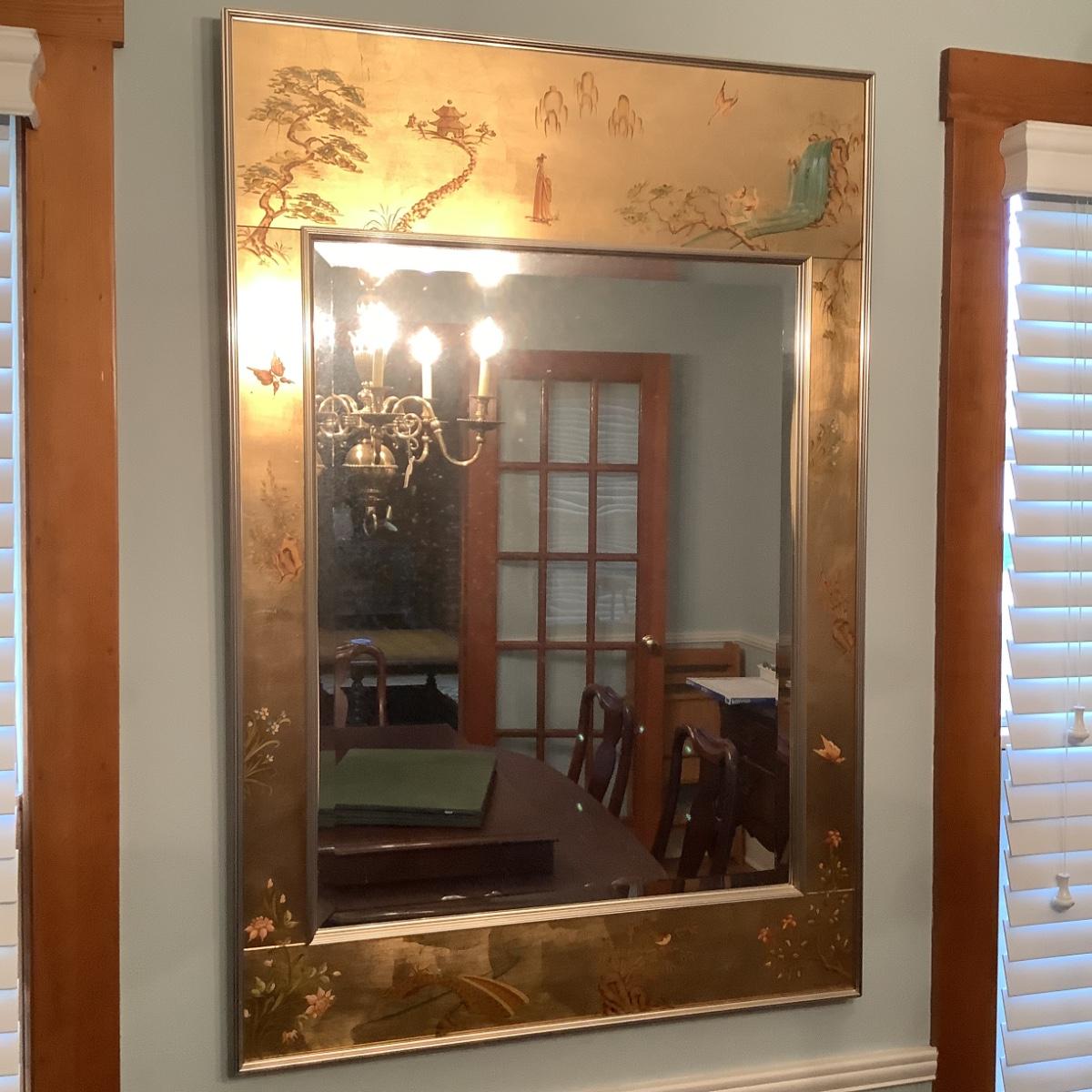 521 1977 La Barge Reverse Hand Painted Chinoiserie Mirror, Signed and Dated