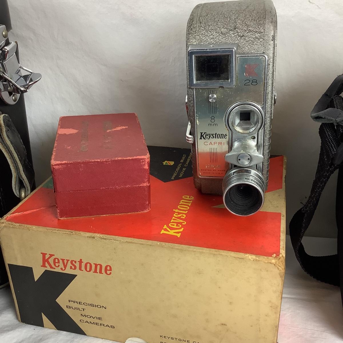 Polaroid Impulse SE 1988 Pro Convention Camera & Keystone Capri 8mm Vintage Camera w/more and Accessories. Camera Box, Bag of Charges Wires and Accessories.