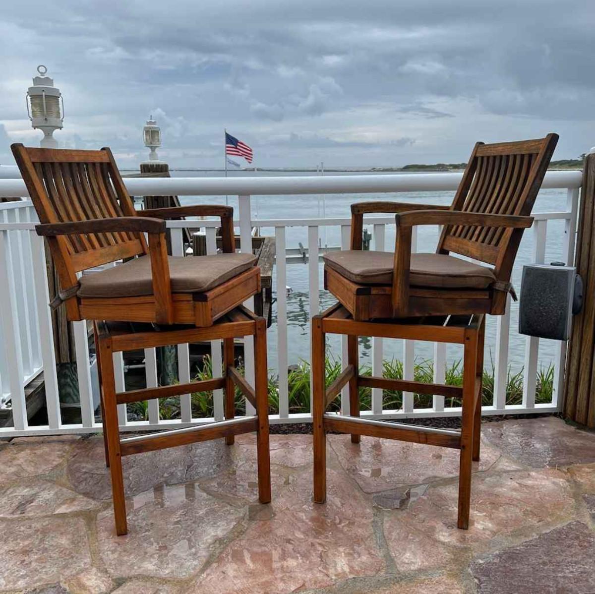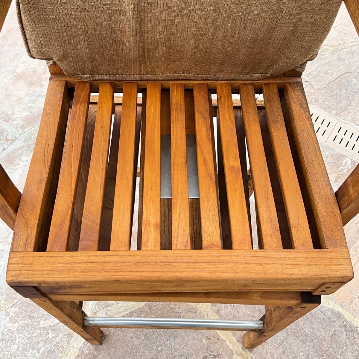 523 Pair of Gloster Teak Swivel Barstools with Cushion